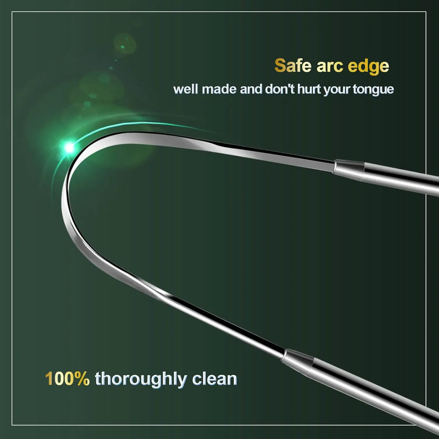 Achieve a cleaner, healthier mouth with our Stainless Steel Tongue Scraper 2-Pack. Designed for both adults and kids, these scrapers are crafted from high-quality, surgical-grade 304 stainless steel, ensuring durability and longevity. Say goodbye to bad breath and hello to a fresh, clean taste. The curved shape and smooth edges provide a comfortable and effective cleaning experience without harming your tongue. Easy to use and even easier to clean, these tongue scrapers will quickly become an essential part of your oral hygiene routine. With a highly flexible design, they adjust to fit any size mouth, ensuring a thorough cleaning every time. Backed by a lifetime guarantee, you can trust in the lasting quality of our tongue scrapers. Upgrade your oral hygiene today and experience the difference!