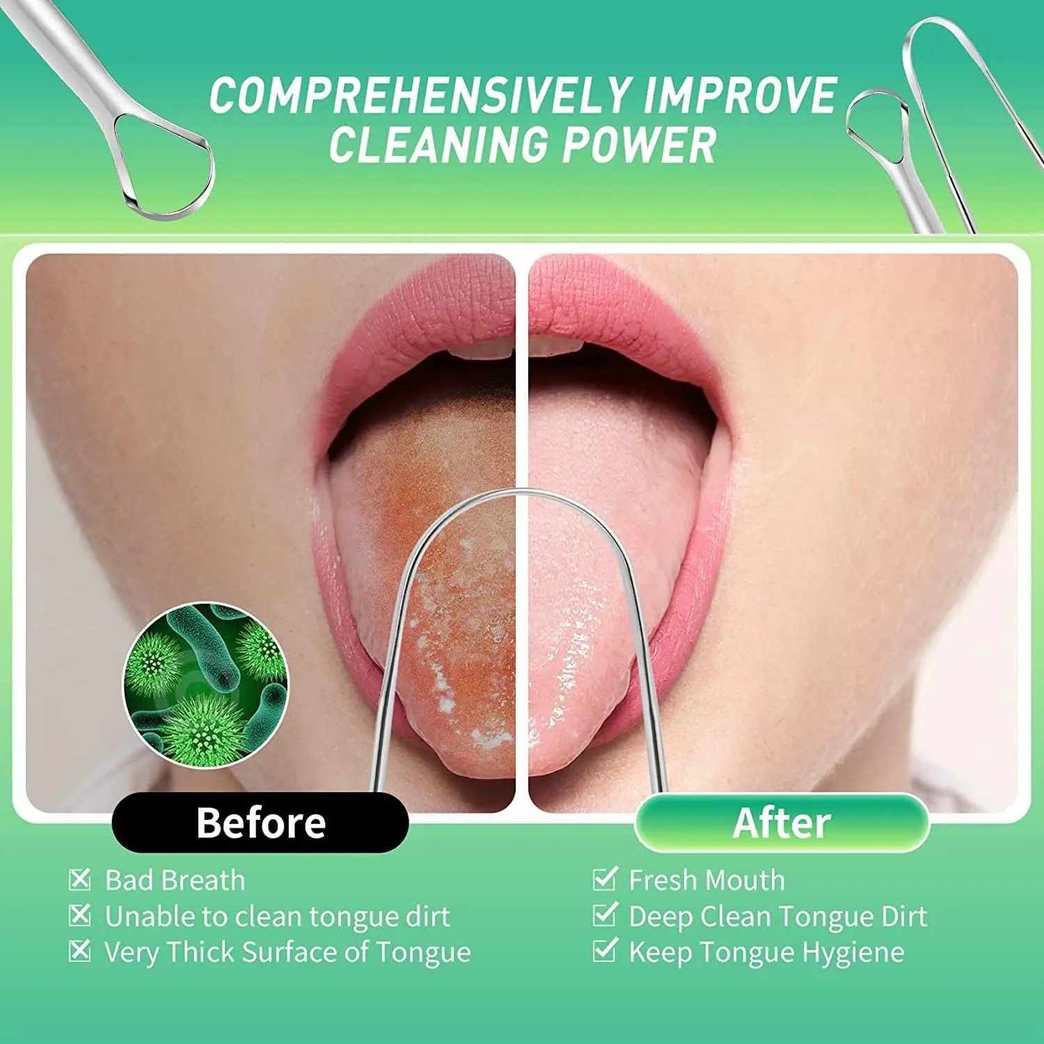 • Professional Tongue Scraper Set: Effectively cleans the tongue, removing bacteria and food debris that cause bad breath.