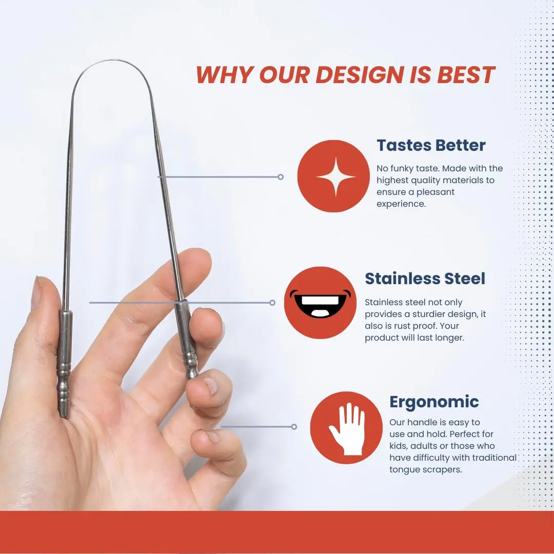 Fight bad breath and elevate your oral hygiene with our premium 2-Pack Tongue Scraper set. Designed for both adults and kids, our metal tongue scrapers provide a superior clean compared to traditional brush cleaners. These stainless steel tongue cleaners are tough on gunk, plaque, and the pesky white-coated layer that can accumulate on your tongue, leading to fresher breath and a healthier mouth. Unlike disposable tongue scrapers, our hygienic stainless steel design is reusable, eco-friendly, and a key component of personal care products for both men and women. This 2-piece kit comes complete with a travel case for each scraper, making it easy to maintain fresh breath on the go. Whether you’re looking for hygiene essentials or a complement to your feminine hygiene products, our tongue scrapper (raspador de lengua para adulto) offers a premium, environmentally conscious alternative to copper or plastic tongue scrapers and tongue brushes. Make our stainless steel tongue scraper with case a vital part of your daily oral care routine and experience the difference! It’s a simple yet effective way to ensure a thorough clean and confident smile. Ditch the bad breath and embrace a cleaner, healthier you.