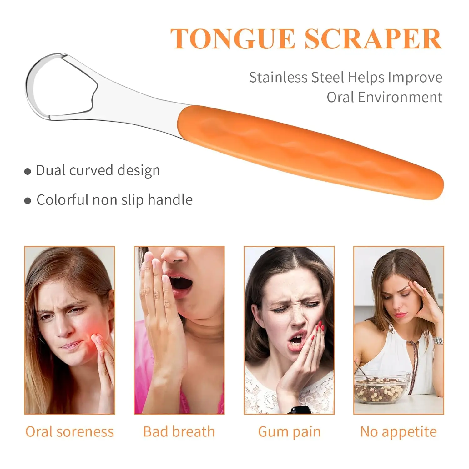 Achieve a cleaner tongue and fresher breath with our durable stainless steel tongue scraper. Its narrow head and comfortable handle make it easy to use and effective at removing bad breath causing bacteria.