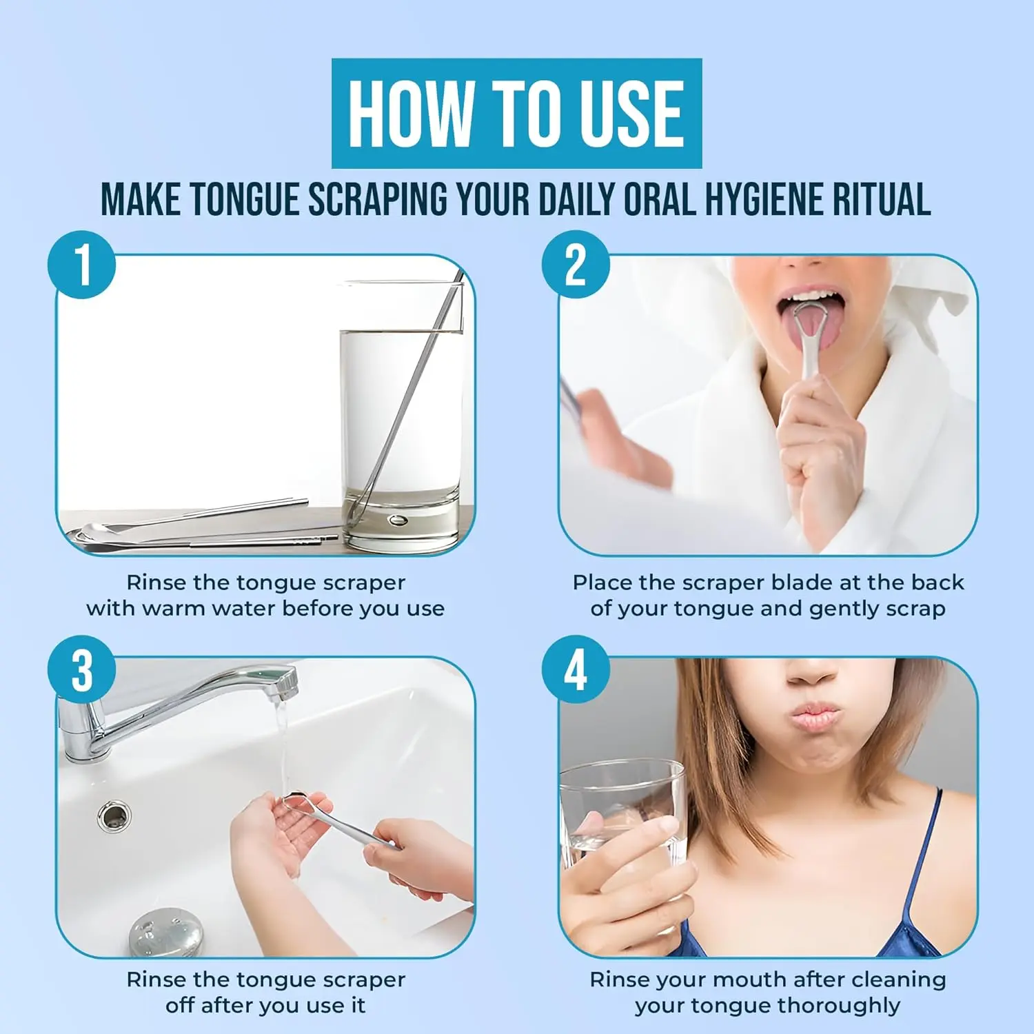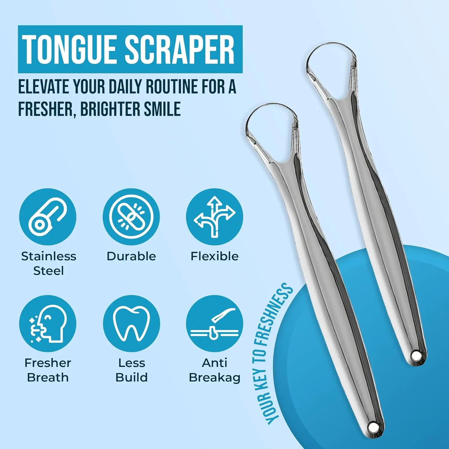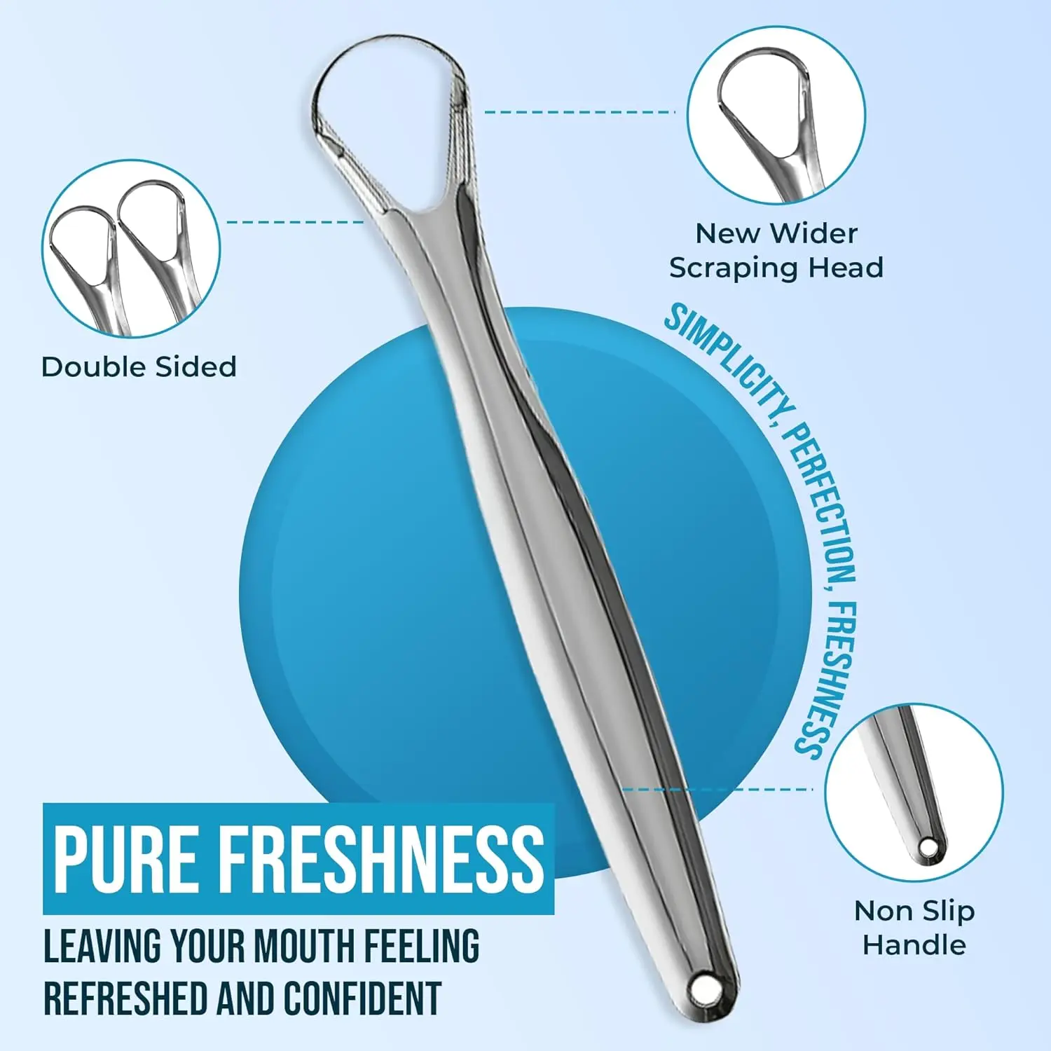 Tired of bad breath holding you back? Our Stainless Steel Tongue Scraper is your simple and effective solution for a fresher, cleaner mouth. This medical-grade stainless steel tongue scraper is designed for adults to eliminate odor-causing bacteria and debris from the surface of your tongue. Unlike plastic scrapers that can break or harbor mold, our durable metal design provides superior cleaning power and is built to last.