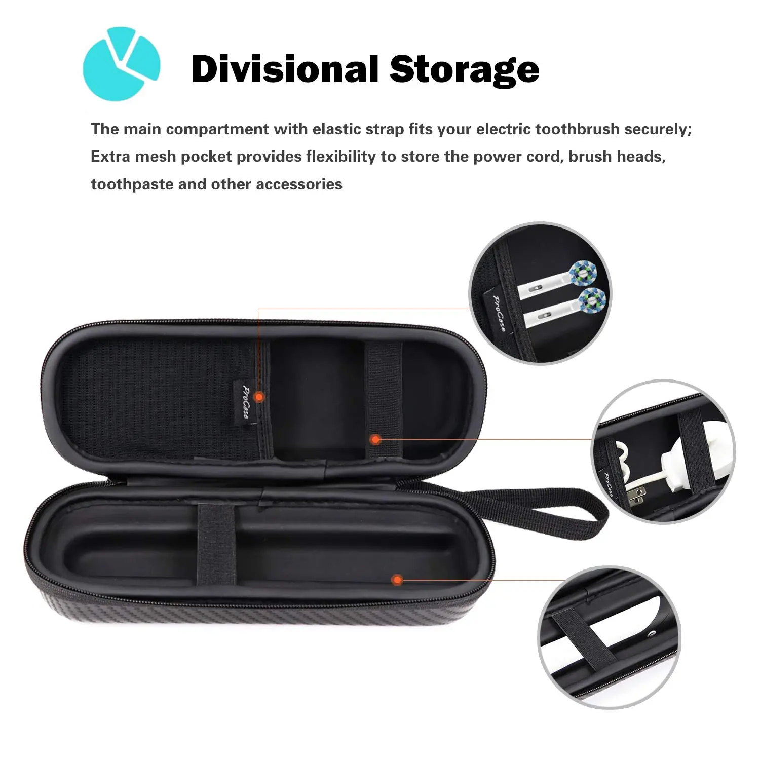 Keep your electric toothbrush safe and clean on the go with this hard EVA travel case. Designed to fit a variety of popular models including Oral-B Pro 1000, Pro 2000, Pro 3000, Pro 3500, Pro 1500, Philips Sonicare DiamondClean, ProtectiveClean, Sonicare 2 Series Plaque Control, and 3 Series Gum Health rechargeable electric toothbrushes, this case provides excellent protection against damage during travel or daily storage. (Case ONLY, toothbrush and accessories are NOT included). The interior features an elastic strap to securely hold your toothbrush in place, preventing it from shifting or getting damaged. An extra mesh pocket offers convenient storage for your power cord, brush heads, toothpaste, and other essential accessories, keeping everything organized and easily accessible. Constructed from premium hard EVA material and durable PU leather, this toothbrush holder offers superior protection against scratches, impacts, spills, and dust. The waterproof PU leather interior is easy to clean with a washcloth and warm water, helping to prevent bacteria breeding and contamination, ensuring your toothbrush stays hygienic. The smooth zipper design allows for easy access to your toothbrush and accessories, while the included hand strap makes it convenient to carry the case wherever you go. Ideal for daily use, travel, camping, and more, this toothbrush travel case is an essential accessory for maintaining your oral hygiene on the go. Its robust construction and thoughtful design ensure that your electric toothbrush is always protected and ready for use, no matter where your adventures take you. This travel case not only safeguards your valuable electric toothbrush, but it also brings peace of mind knowing that you are maintaining the longevity of your purchase!
