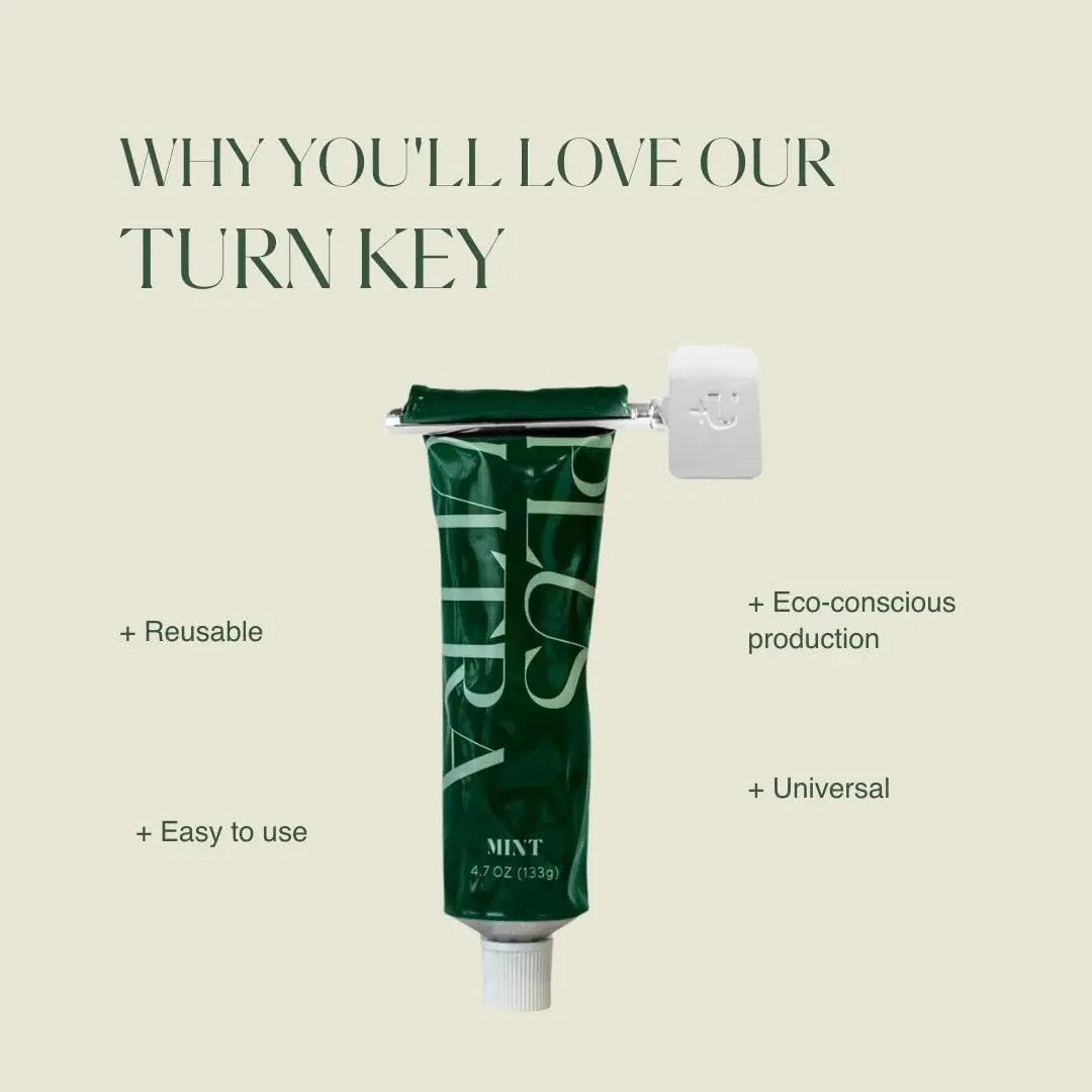 The Plus Ultra Turn Key is a reusable toothpaste tube squeezer that helps you save toothpaste and money! It’s quick, easy to use, and prevents waste.