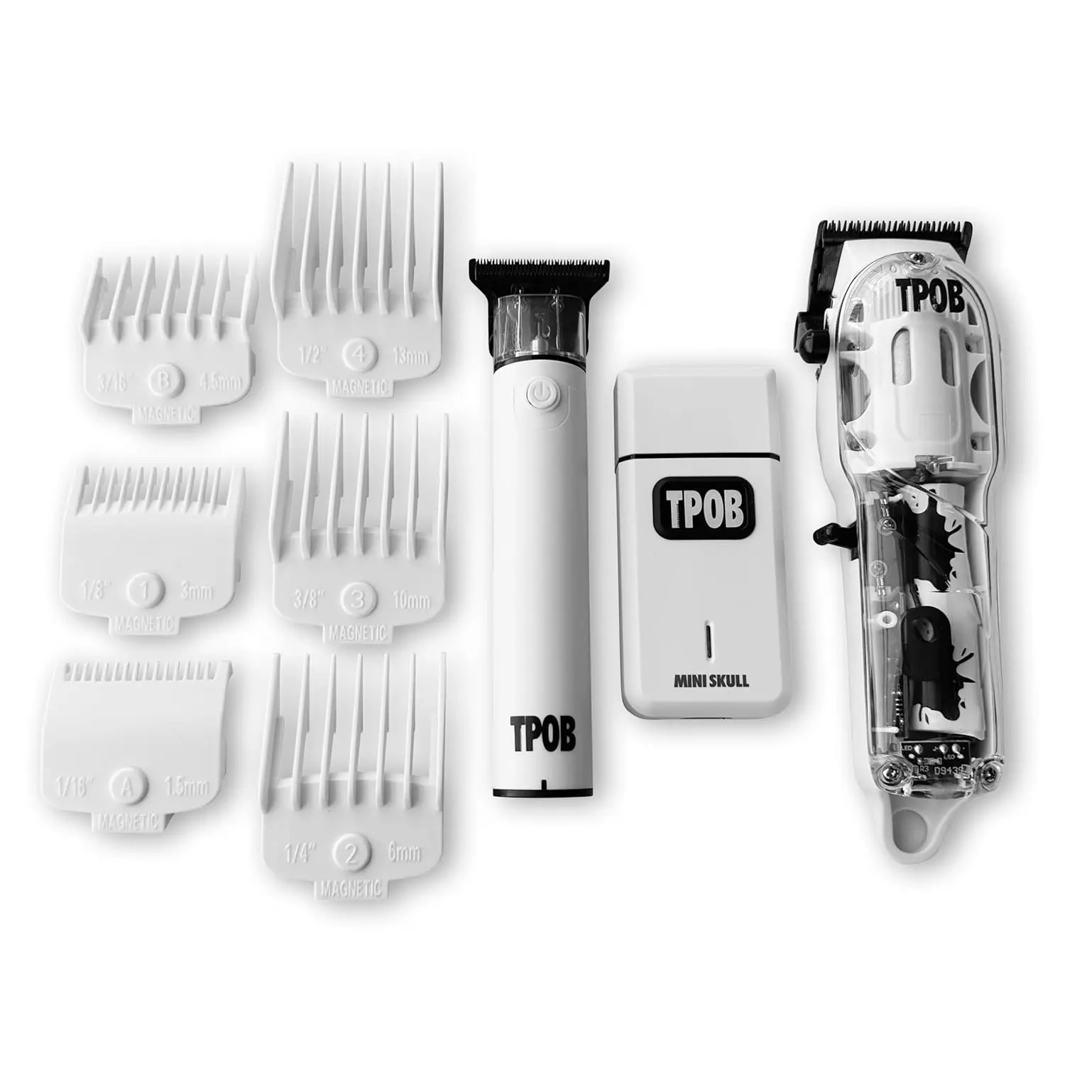 Experience the next level of precision and performance with the TPOB Slime 2 Professional Hair Clippers. Designed for barbers and stylists who demand the best, the Slime 2 delivers seamless blends, effortless texture creation, and superior bulk hair removal, all with the convenience of cordless operation. Our revolutionary Diamond Coated X Blade ensures a sharper, cleaner cut every time, gliding through hair with ease and providing exceptional durability. The innovative Cool Blade Technology keeps the blade temperature down, preventing overheating and ensuring a comfortable experience for both you and your client. No more hot blades! The color-coded guide combs take the guesswork out of achieving the perfect hair length. Each comb is clearly marked, making it simple to select and remember your favorite settings. Upgrade your toolkit with the TPOB Slime 2 and witness the difference. Crafted for precision and power, this clipper helps you realize perfect fades and detailed cuts with ease. The new 5 Indent Metal Clicking Lever provides additional precision and control.