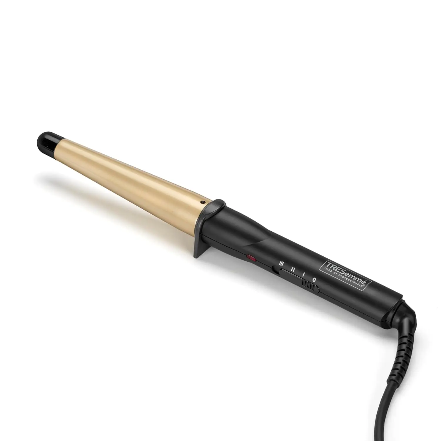 Achieve effortless, textured waves and curls with the TRESemme Curl Define Wand. This professional-quality curling wand features a 19mm-32mm ceramic tapered barrel, perfect for creating a variety of looks, from loose, beachy waves to defined, bouncy curls. The ceramic coating ensures even heat distribution, minimizing damage and leaving your hair smooth and shiny. With three heat settings (170°C, 185°C, and 200°C), you can customize the temperature to suit your hair type and desired style. For added safety and peace of mind, the wand includes an automatic shut-off function that activates after 72 minutes of inactivity. Advanced Heat Tech maintains a consistent high heat during use, ensuring long-lasting curls that hold their shape. A built-in safety stand keeps the wand safely elevated while not in use, preventing accidental burns. The 2.5-meter long swivel cord provides maximum flexibility and freedom of movement during styling. To protect both your surfaces and your hands, the TRESemme Curl Define Wand comes complete with a heat-proof mat and a heat-resistant glove. Create salon-worthy curls at home with this easy-to-use and versatile curling wand. Get ready to turn heads with beautifully defined waves and curls that last all day. The tapered design allows for versatile styling. Whether you want tousled waves or defined curls, this wand delivers professional results every time. The included accessories provide extra protection and convenience, making styling your hair a breeze. This is your ultimate tool for creating stunning, head-turning styles.