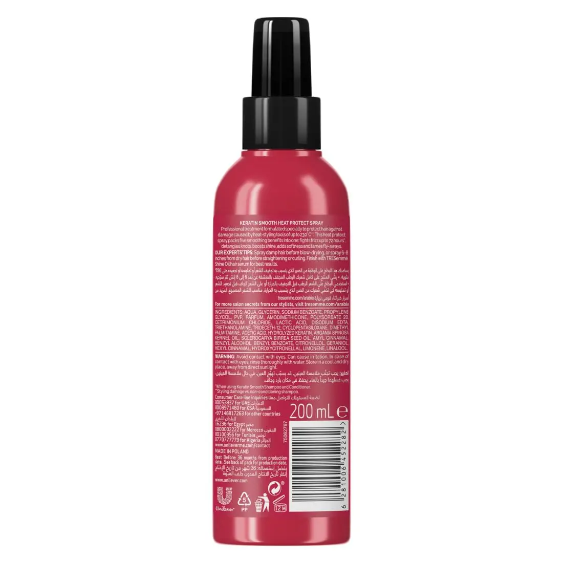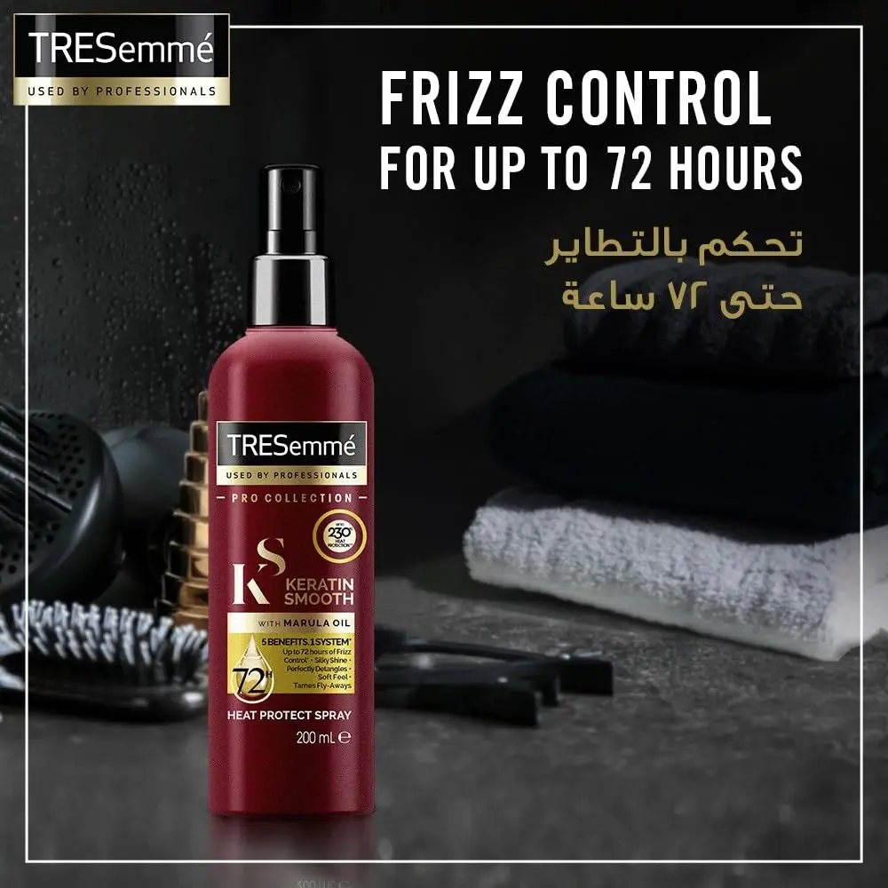 Shield your hair from heat with TRESemmé Keratin Smooth Heat Protect Spray. Protects up to 450°F, fights frizz, adds shine, and helps prevent damage.