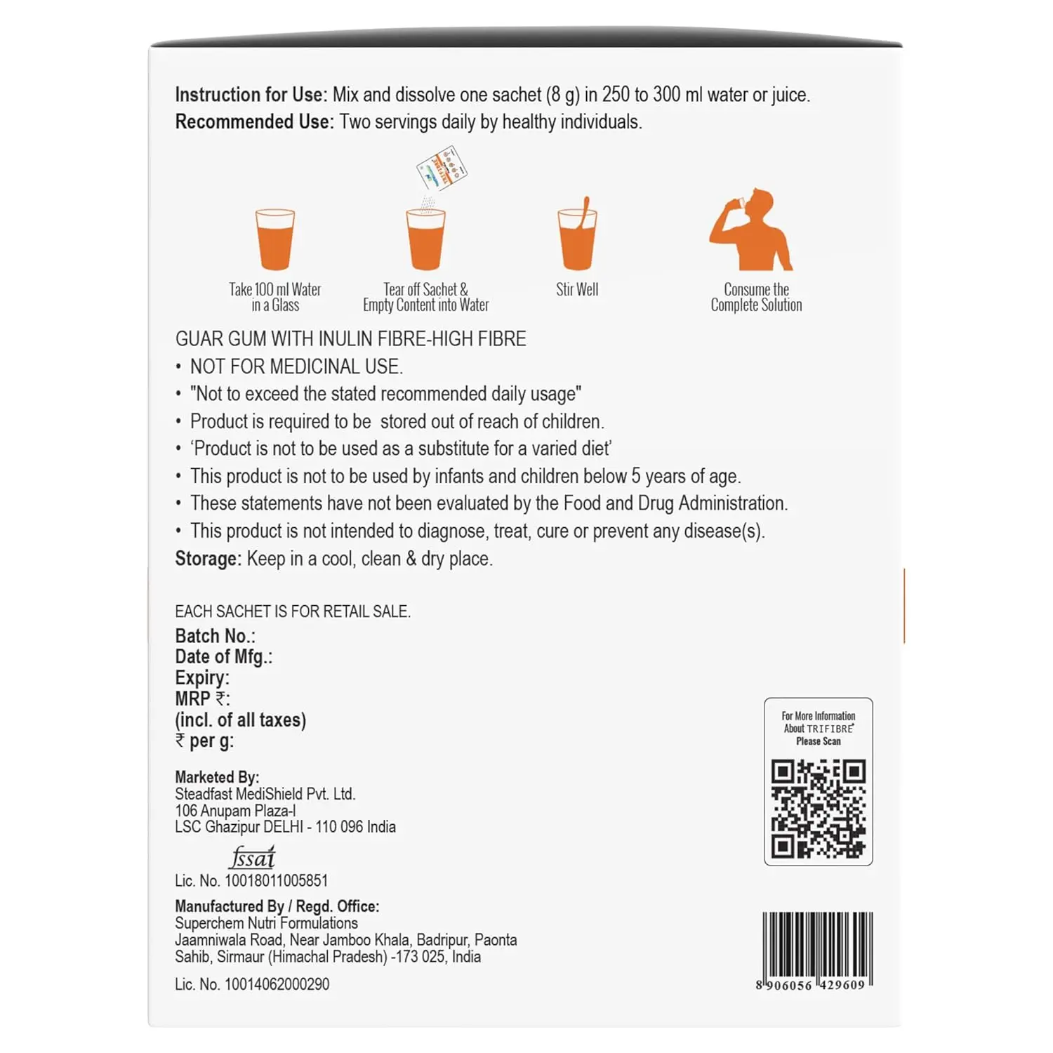 Tri Fibre is your tasteless, odorless, and colorless solution for boosting digestive health and overall well-being! This soluble fibre blend is easily incorporated into your daily routine, providing essential fibre without altering the taste or appearance of your favorite foods and beverages. Tri Fibre is a low-calorie formula that supports healthy digestion, helping to keep your system running smoothly. It effortlessly dissolves in water and can be conveniently added to meals or enjoyed as a between-meal supplement. What’s more, Tri Fibre is heat-resistant, making it incredibly versatile. Enhance your soups, salads, pulses, and vegetables with a boost of fibre without compromising flavor or texture. Experience the benefits of improved gut health and overall vitality with this easy-to-use fibre supplement. Tri Fibre helps in improving the health and overall well being of organs. It is a low calorie formula which provides the required fibre important for the digestive health. Make Tri Fibre a part of your daily life and discover a happier, healthier you!
