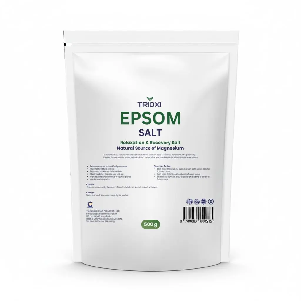 Indulge in the therapeutic benefits of Trioxi Epsom Salt, your all-natural solution for relaxation, muscle relief, and radiant skin. Sourced from pure magnesium sulphate, our Epsom salt is free from added chemicals and fragrances, ensuring a premium experience for your body and mind. Transform your bath into a soothing sanctuary, easing muscle soreness, stress, and fatigue after intense workouts or demanding days. Trioxi Epsom Salt is the ideal choice for athletes and anyone seeking natural recovery. Discover the secret to soft, rejuvenated skin with our versatile Epsom salt. Use it as a foot soak to relax tired muscles, reduce swelling, and exfoliate rough skin. Incorporate it into your beauty routine for DIY scrubs and body exfoliants that remove impurities and promote a healthy, glowing complexion. Enhance your home spa experience by mixing Trioxi Epsom Salt with your favorite essential oils for a personalized and luxurious treatment. Beyond personal care, Trioxi Epsom Salt also acts as a natural water softener for your pool and spa, helping to balance water hardness and clarity. Enjoy smoother, more refreshing water that’s gentle on your skin and eco-friendly. Choose Trioxi Epsom Salt for a holistic approach to wellness, beauty, and home care. Experience the difference of pure, premium quality Epsom salt.