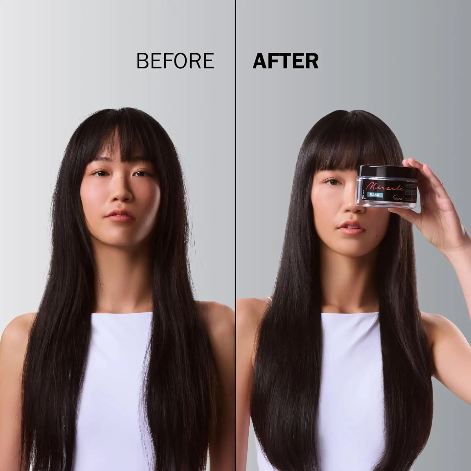 Revitalize your hair with the TRUSS Miracle Mask, a powerhouse of hydration and protein designed to repair and protect your precious locks. This intensive hair mask acts as a weekly protein treatment, deeply penetrating each strand to mend damage caused by heat styling, coloring, and other chemical processes. Infused with a rich blend of natural proteins and keratin, this formula works from the inside out, rebuilding strength and resilience. Say goodbye to brittle, damaged hair and hello to healthy, shiny locks that can withstand the daily rigors of styling. The TRUSS Miracle Mask isn’t just about repair; it’s about prevention. Its protective barrier shields your hair from future damage caused by blow drying and hot styling tools, ensuring your hair stays strong and vibrant. Experience the transformative power of this deeply hydrating mask as it detangles knots, reduces breakage, and tames frizz, leaving you with smooth, manageable hair that shines with health. Whether you have smooth or curly hair, this versatile mask is suitable for all hair types, providing the essential moisture and protein your hair craves. Incorporate the TRUSS Miracle Mask into your hair care routine one to three times a week for optimal results. After shampooing, simply apply the mask, let it sit for five minutes, and rinse to reveal beautifully restored hair. Join the millions around the world who trust TRUSS products to deliver exceptional results. From added shine to deep conditioning treatments, TRUSS is a globally recognized brand trusted by salons in over 22 countries. Unlock the secret to healthy, resilient hair with the TRUSS Miracle Mask. Give your hair the miracle it deserves!