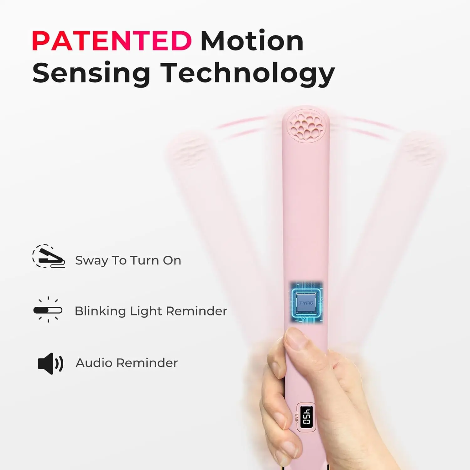 Achieve salon-quality hair straightening and curling with the TYMO Flat Iron Hair Straightener Curler 2 in 1. This professional-grade styling tool features 32 adjustable temperature settings, ranging from 140 to 450℉, making it suitable for all hair types, including curly, afro, fine, and thick hair. The speedy 10-second heat-up time and 1″ 3D floating plates with nano titanium coating allow for effortless styling in just one pass, without snagging or damage. Advanced MCH heating technology ensures even and efficient heat distribution for consistent results. Safety is paramount with the patented Sway On gravity sensor for activation and a 5-minute automatic shut-off function. The portable and lightweight design, along with dual voltage compatibility (100-240V), makes it perfect for travel. User-friendly features include an anti-scald design, LED display, temperature last memory, and automatic temperature calibration to prevent heat damage. This versatile 2-in-1 tool combines the functionality of a straightener and curler, allowing you to create a variety of hairstyles with ease and confidence. The tangle-free swivel cord adds convenience during styling. Experience professional results at home or on the go with the TYMO Flat Iron.
