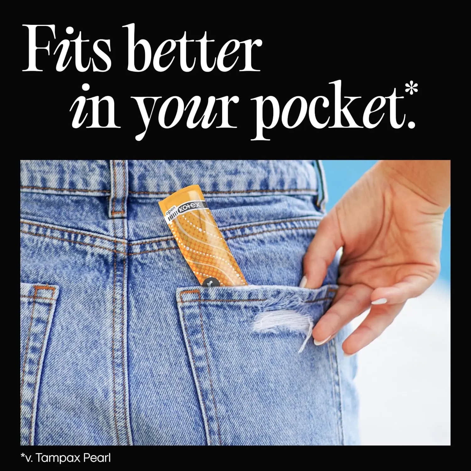 Experience superior protection and ultimate comfort with U by Kotex Click Tampons Super. These tampons offer up to 100% leak-free protection thanks to the innovative Xpress-DRI technology, giving you confidence throughout your day. Voted the #1 compact tampon*, chosen by women every 1.9 seconds, U by Kotex Click Tampons are designed for your busy lifestyle. Enjoy more comfort than the second leading compact tampon** with a smooth tip that ensures easy and comfortable insertion. Plus, they are MADE WITHOUT fragrance, making them ideal for sensitive skin. The compact design fits discreetly in your purse or pocket, and with one simple click, it transforms into a full-size tampon ready for use. Each tampon is individually wrapped in vibrant colors and patterns inspired by the latest fashion trends (packaging may vary from image shown), adding a touch of style to your feminine care routine. This pack contains 45 super absorbency tampons, perfect for your period needs. And good news – U by Kotex feminine products are FSA, HSA, and HRA-eligible in the U.S., offering you convenient payment options. Choose U by Kotex Click Tampons Super for reliable protection, ultimate comfort, and discreet convenience.