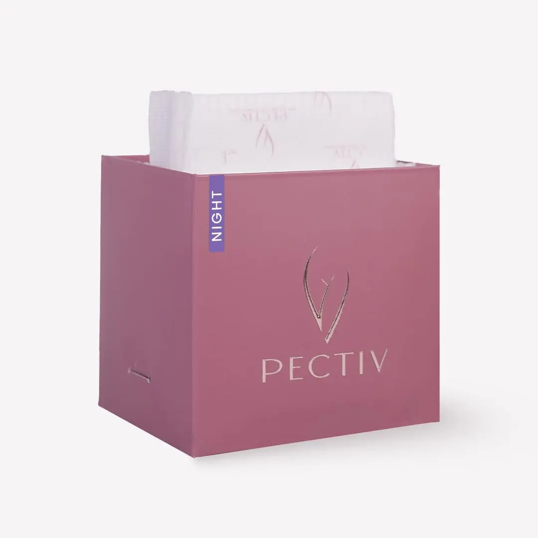 Experience ultimate protection and luxurious comfort during your period with our ultra-thin night pads designed for heavy flow. These pads offer a unique combination of anti-bacterial properties, non-toxic materials, and a thoughtful design to ensure a worry-free and comfortable experience. The built-in Anion Layer actively prevents the accumulation of bacteria and yeast, eliminating odors and guarding against infections. You can say goodbye to discomfort, itching, and burning sensations. Crafted with non-toxic materials, these pads eliminate irritation, letting you avoid recurrent rashes and skin darkening in the intimate area. The PECTIV slim period pads boast a unique design that prioritizes both comfort and protection. The four secure wings and side guards act as an additional barrier to keep you safe and secure. The pads are designed to prevent leakage so you can be worry-free when you are active. Our night pads are the perfect solution for heavy flow, especially overnight. The generous size provides maximum coverage and absorbs heavy flow effectively, leaving you feeling secure and confident throughout the night. Indulge in the luxurious comfort of our silky smooth materials. These pads feel gentle against your skin, allowing you to confidently go about your day or get a great night’s sleep. Live your life to the fullest and never miss a beat of your vibrant life, wherever and whenever you go. You can experience premium protection with our products. Enjoy every moment with confidence and security.