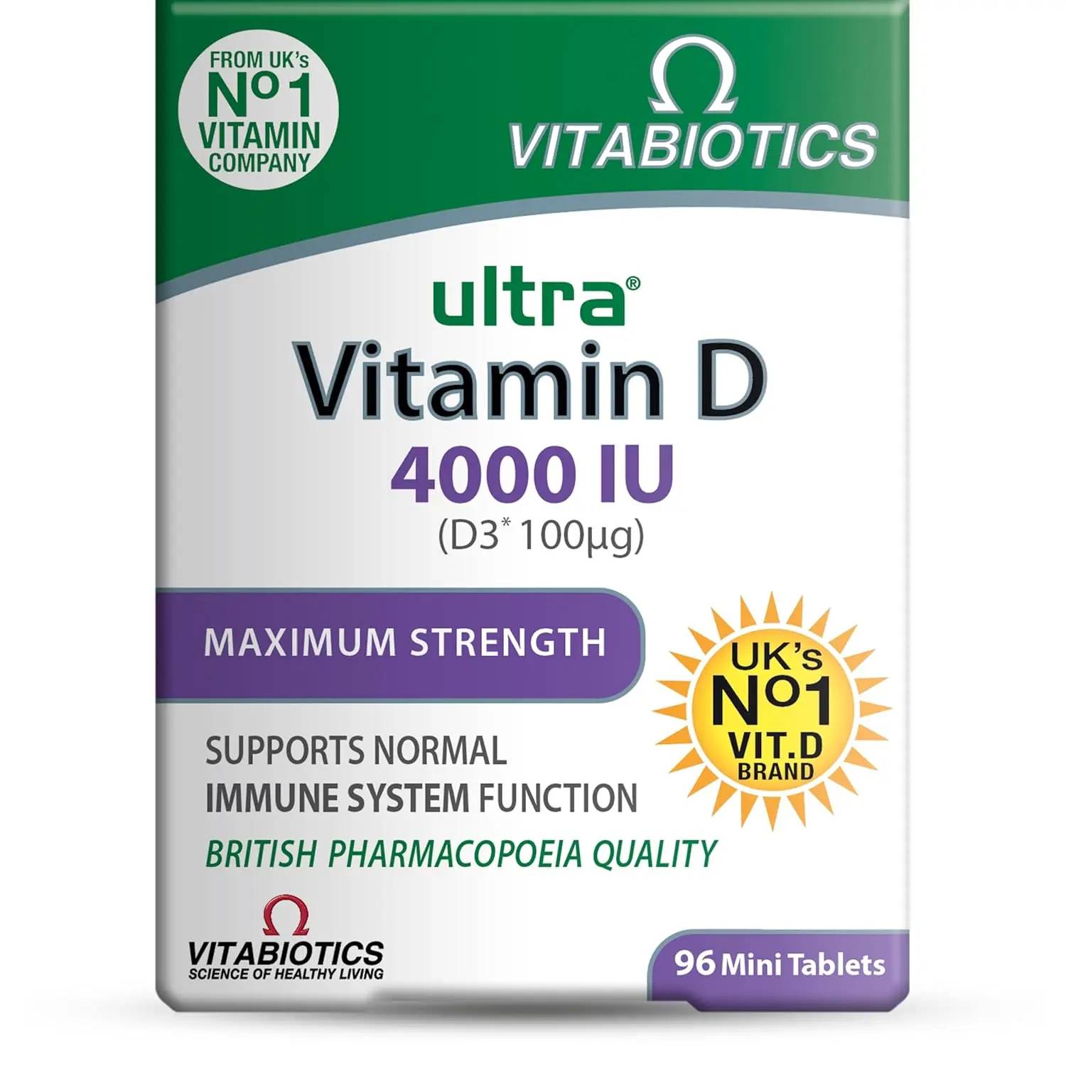 Vitabiotics Ultra Vitamin D 2000IU provides a potent dose of Vitamin D3, supporting normal immune function. Suitable for vegetarians. Sunlight is difficult to get.
