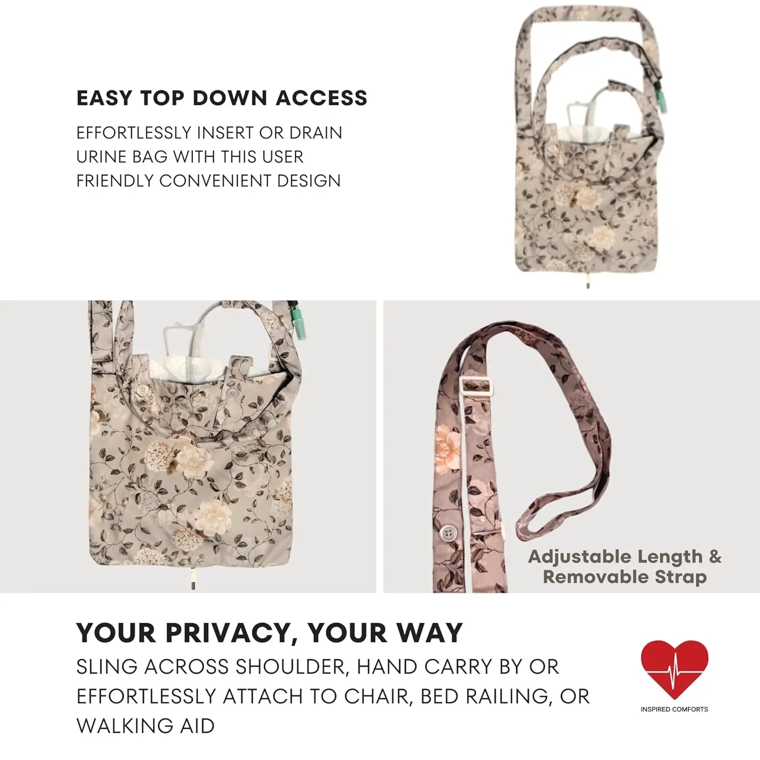 Maintain privacy & dignity with our stylish urine bag cover. Fits up to 2000ml bags. Multiple carry options. Durable, leak-proof, easy to clean. Floral print.
