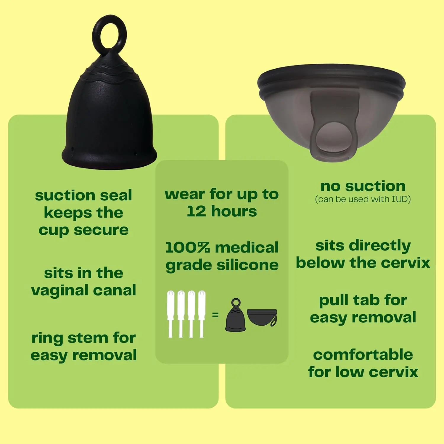 Experience a comfortable and sustainable period with the V Menstrual Cup! This reusable cup is crafted from 100% medical-grade silicone, ensuring both safety and flexibility. The dark color prevents unsightly discoloration, keeping your cup looking fresh for years to come. Designed with a ring stem, insertion and removal are seamless and effortless. Ridges are thoughtfully placed to provide a secure fit, preventing internal slippage and offering peace of mind throughout your day. Enjoy up to 12 hours of reliable protection, perfect for busy menstruators. With proper care, the V Menstrual Cup can last up to a decade, making it an eco-friendly and cost-effective alternative to traditional period products. The V cup is designed to reduce the risk of toxic shock syndrome, bacterial infections, and even period cramps, offering a healthier and more comfortable experience. Embrace a period solution that is both good for you and good for the planet with the V Menstrual Cup. Support a female and POC-founded business and make the switch to a sustainable period today!