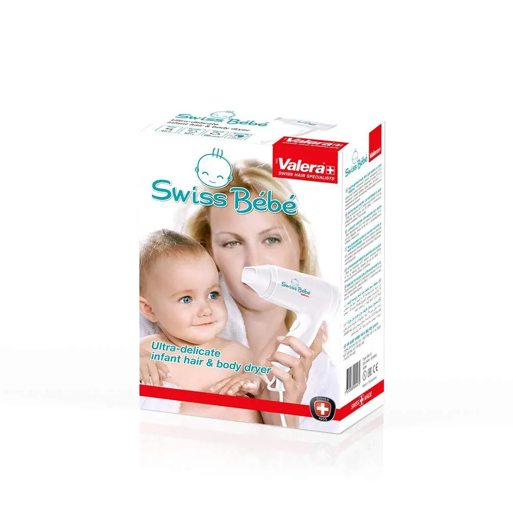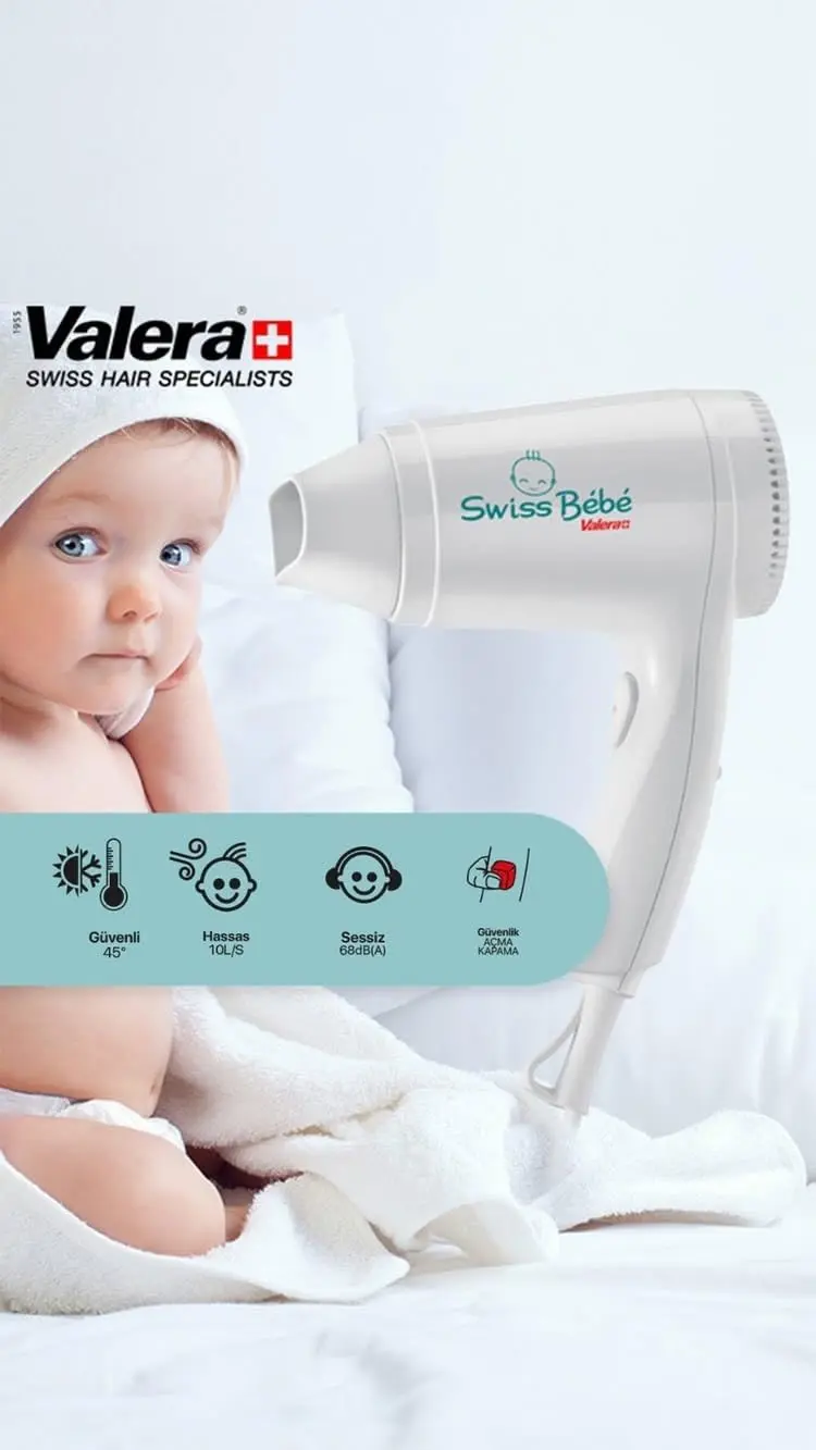 Pamper your little one with the Valera Baby Hair Dryer, designed for the utmost safety and gentleness. This super-soft hair dryer is perfect for babies, toddlers with fine hair, and even seniors with sensitive scalps. Experience peace of mind knowing that the Valera Baby Hair Dryer operates at a safe lukewarm temperature of only 45°C, preventing any risk of burns or discomfort. The gentle airflow of just 10 l/s ensures a delicate drying experience, while the low noise level of 68 dB(A) keeps things pleasantly quiet, minimizing disturbance for your child. Furthermore, the Valera Baby Hair Dryer emits up to 30 percent less electrosmog compared to conventional hair dryers, providing added reassurance. With two combinations of temperature and fan settings, you can customize the drying process to suit your baby’s needs. A built-in safety pressure switch enhances safety during use. This Swiss-made dryer delivers gentle care you can trust. The Valera Baby Hair Dryer is the perfect tool for ensuring your baby’s hair is dried safely, comfortably, and quietly. It has been tested to be safe to use on baby’s and toddler’s sensitive scalps, and fine hair. The gentle features are sure to be perfect for babies who dislike loud noises or strong gusts of wind!