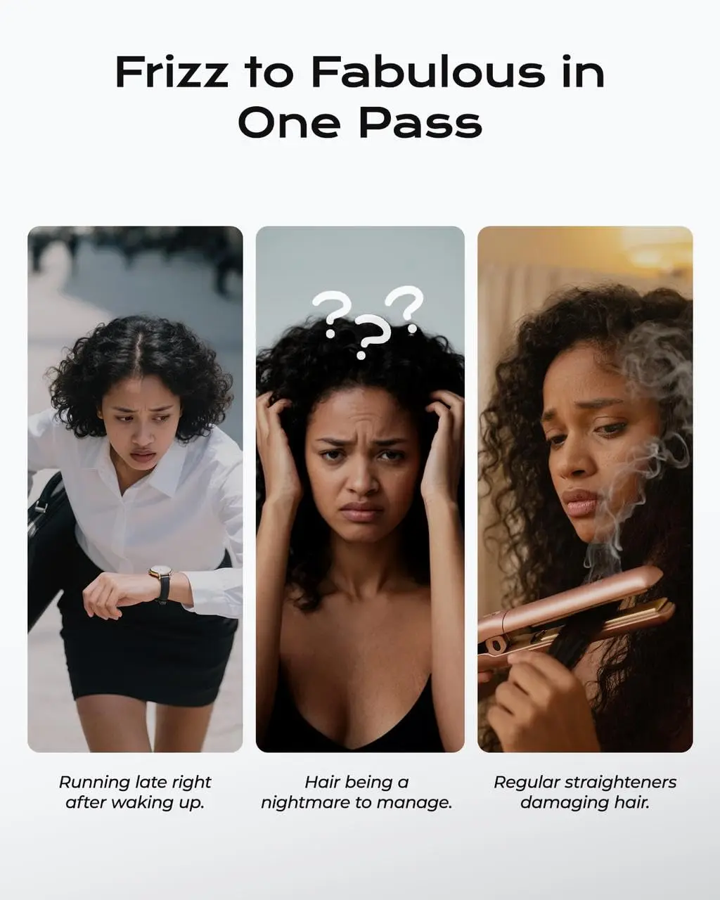 Versatility is key with the VANESSA PRO Flat Iron. It’s not just a flat iron; it’s also a curling iron. Whether you want silky-smooth straight hair or bouncy, dreamy curls, this tool can do it all. Meeting your different styling needs has never been easier. Get ready to transform your hair and achieve the perfect look every time with the VANESSA PRO Flat Iron. It’s the ultimate styling tool for anyone who wants professional results from the comfort of their own home.