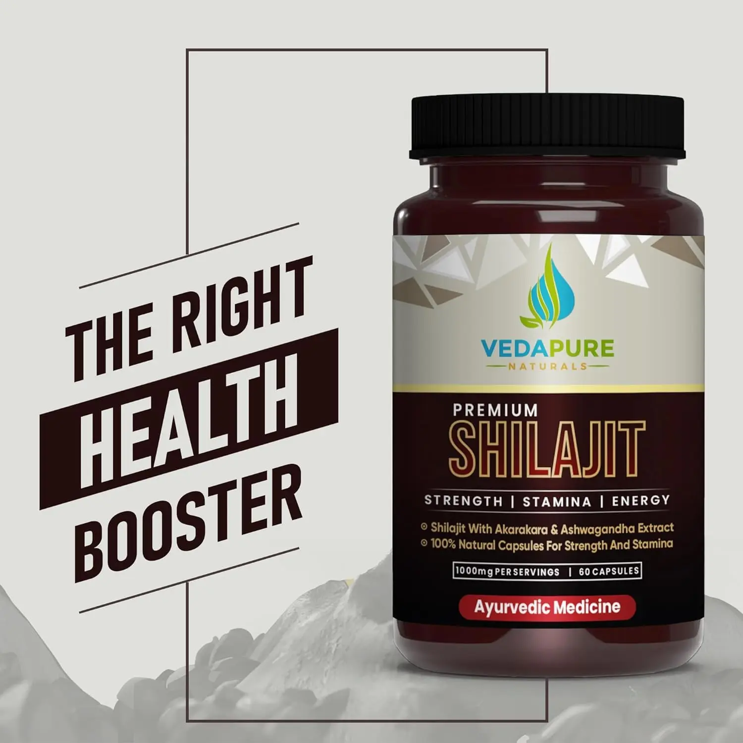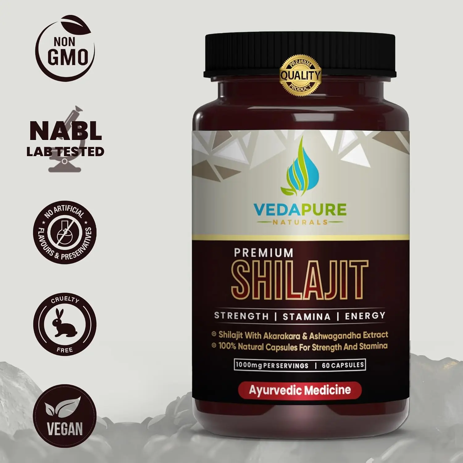 Vedapure Shilajit Capsules – Ashwagandha & Safed Musli