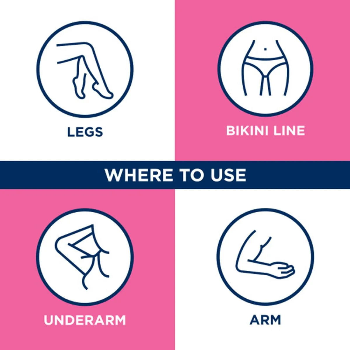 • Suitable for use on legs, arms, underarms, and bikini line.
