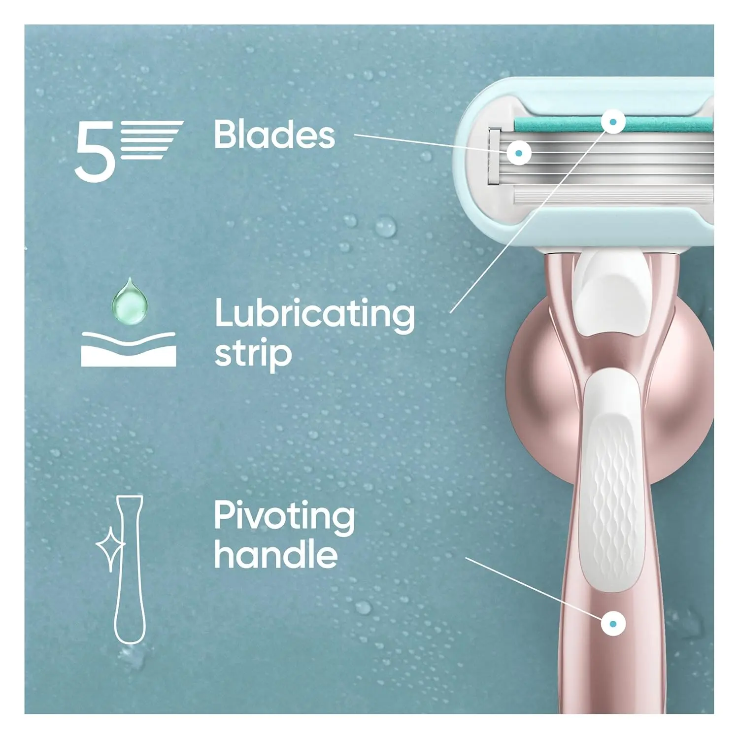 Experience the ultimate in smooth, sensitive shaving with the Venus Deluxe Smooth Sensitive Razor in Rose Gold. This razor is meticulously designed to deliver a lasting, irritation-free shave that will leave your skin feeling soft and radiant. The key to its exceptional performance lies in its five expertly crafted blades and SkinElixir lubrastrip, which work together to provide an extra smooth glide and minimize irritation. Say goodbye to razor burn and hello to comfortably smooth skin! The durable design ensures that each razor blade lasts up to one month, based on shaving twice a week. When you’re ready for a fresh start, simply replace the blade. This razor also boasts a durable, ergonomic metal handle, molded to fit comfortably in your hand, providing enhanced control and precision during your shave. Experience superior skin protection with the razor’s water-activated ribbon of moisture, which delivers 10x more lubrication compared to Simply 3 Sensitive razors. This helps to guard your skin against nicks, cuts, and irritation, even on sensitive areas. The diamond-like coated blades bring a soft, smooth glide to every stroke, ensuring 100% smooth skin. Get the perfect shave every time with Venus Deluxe Smooth Sensitive Razor. Shave right, not more!