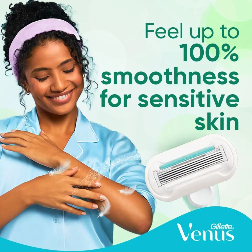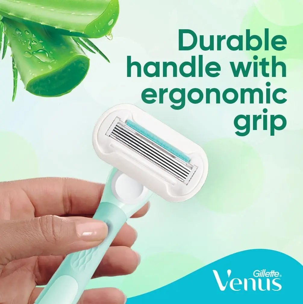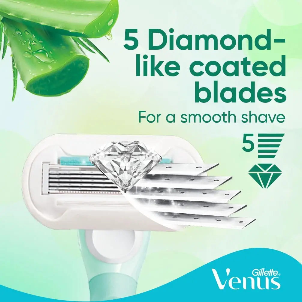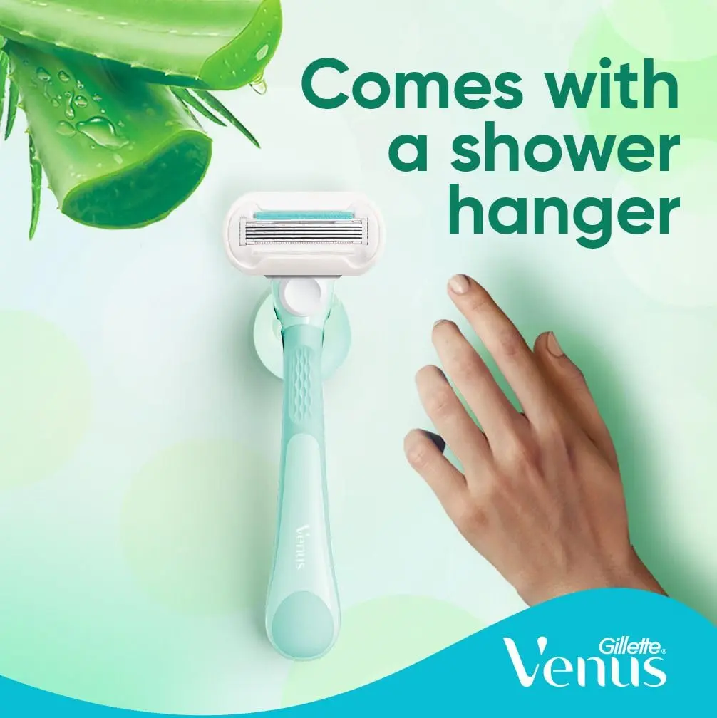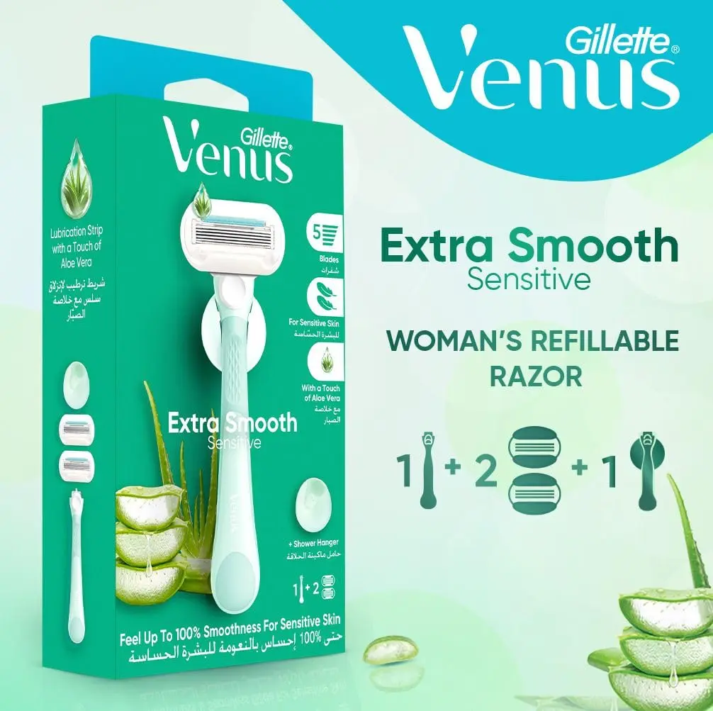 Experience an incredibly smooth and comfortable shave with the Venus Extra Smooth Sensitive Razor. Designed specifically for sensitive skin, this razor features 5 diamond-like coated blades that glide effortlessly over your skin, minimizing irritation and providing a close, clean shave. The enhanced Lubrastrip, infused with a touch of aloe vera, provides superior lubrication and soothing comfort, leaving your skin feeling soft, smooth, and moisturized. This set includes one durable, ergonomically designed handle for a secure and comfortable grip, plus two blade refills, extending the life of your razor and reducing waste. The included shower hanger provides convenient storage, keeping your razor clean, dry, and easily accessible. With Venus Extra Smooth Sensitive, you can achieve a flawless shave without the worry of irritation. Keep the handle, change the blade – it’s the smart and sustainable way to shave. Enjoy the confidence of beautifully smooth skin with every shave, thanks to Venus’ commitment to quality and innovation. Say goodbye to razor burn and hello to silky-smooth results. This razor is perfect for anyone who wants a gentle yet effective shaving experience.