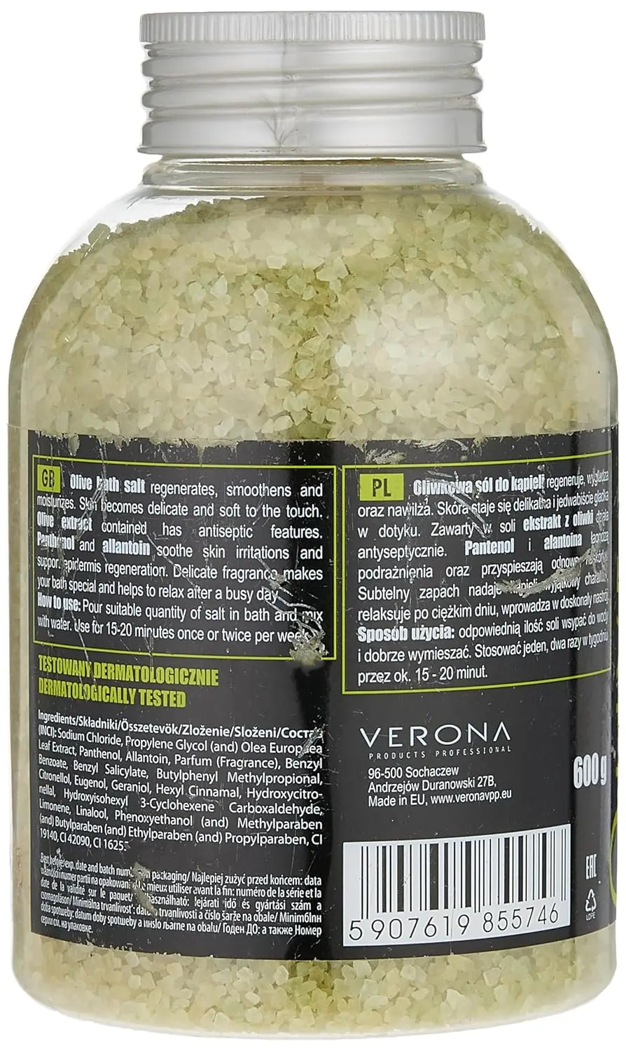 Indulge in a revitalizing and therapeutic bathing experience with Verona Olive Bath Salts. These premium bath salts are infused with the natural goodness of olive, known for its moisturizing and antioxidant properties. The calming green hue of the salts adds a touch of serenity to your bath, creating a spa-like atmosphere in the comfort of your own home. Let the rich minerals and olive extract gently soothe your muscles, relieve tension, and leave your skin feeling soft, supple, and refreshed. Perfect for unwinding after a long day or simply treating yourself to a moment of self-care, Verona Olive Bath Salts transform your ordinary bath into an extraordinary escape. The 600gm size ensures long-lasting enjoyment, allowing you to experience the rejuvenating benefits of olive-infused bath salts time and time again. Let the invigorating aroma and therapeutic properties transport you to a place of tranquility and well-being. Suitable for all skin types.