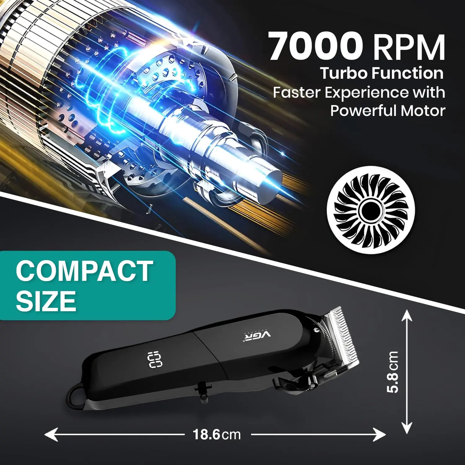 The VGR V-118 offers professional cutting performance with cordless convenience. Its sharp blades, adjustable settings, and long battery life make it ideal for home or travel grooming.