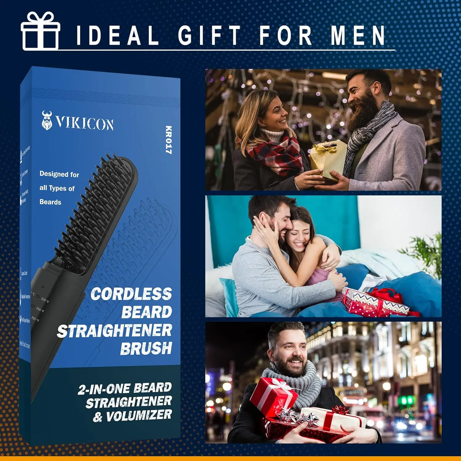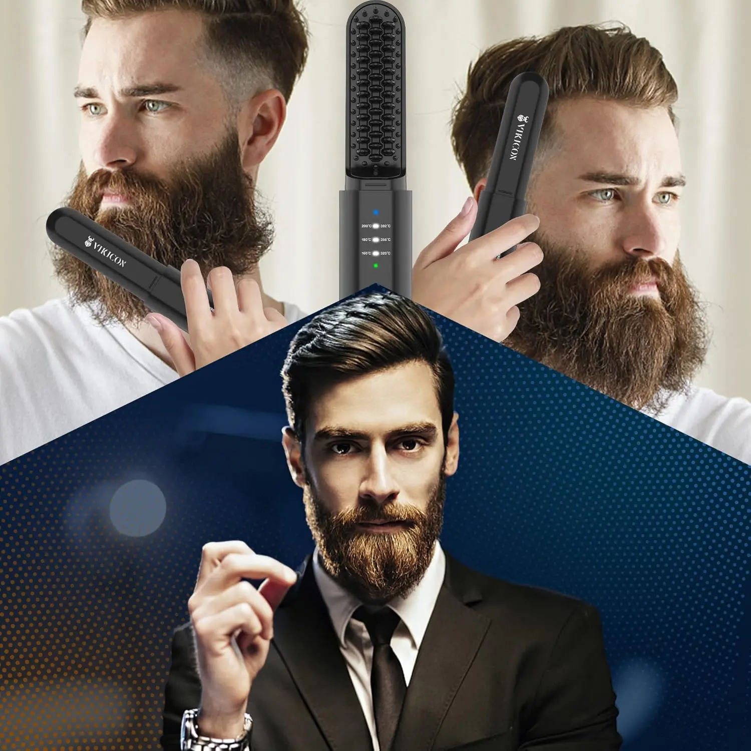 Tame your beard and hair effortlessly with the VIKICON 2-in-1 Beard and Hair Straightener. This innovative tool combines the functionality of a comb and a straightener, allowing you to smooth, straighten, or define your beard and hair in minutes. Featuring a protective cover, this straightener ensures your style stays put all day long. The wireless design, powered by a huge 4000mAh battery, provides up to 30 minutes of continuous smoothing performance. A full charge takes approximately 3 hours using a 5V/2A adapter for the first charge. The anti-scald design, with three heating settings ranging from 160-200°C, caters to all beard and hair types. Each comb tooth is coated with an anti-scald material, preventing burns and ensuring even heat distribution. This mini iron is the perfect travel companion, allowing you to maintain a refreshed and well-groomed look on the go, without worrying about finding sockets. The VIKICON beard straightener comb makes an excellent gift for any man with a beard – father, husband, son, boyfriend, or brother. Help them maintain a thick and healthy beard by adding this straightener to their grooming set. With its versatile design and travel-friendly features, the VIKICON beard straightener is the ultimate tool for achieving a perfectly styled beard and hair, anytime, anywhere.