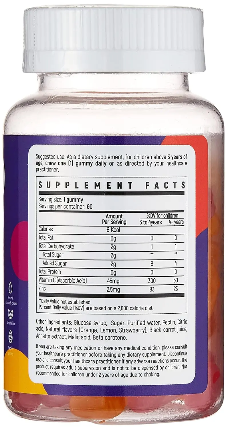Boost your immune system and strengthen your bones with our delicious Vitamin C + Zinc Gummies! These chewable gummies provide a convenient and tasty way to ensure you’re getting essential nutrients for overall health and well-being. Vitamin C is a powerful antioxidant that helps protect your body against free radicals and supports a healthy immune response. Zinc is another vital mineral that plays a crucial role in immune function, wound healing, and cell growth. Together, Vitamin C and Zinc create a synergistic effect, maximizing their individual benefits for optimal immune support.