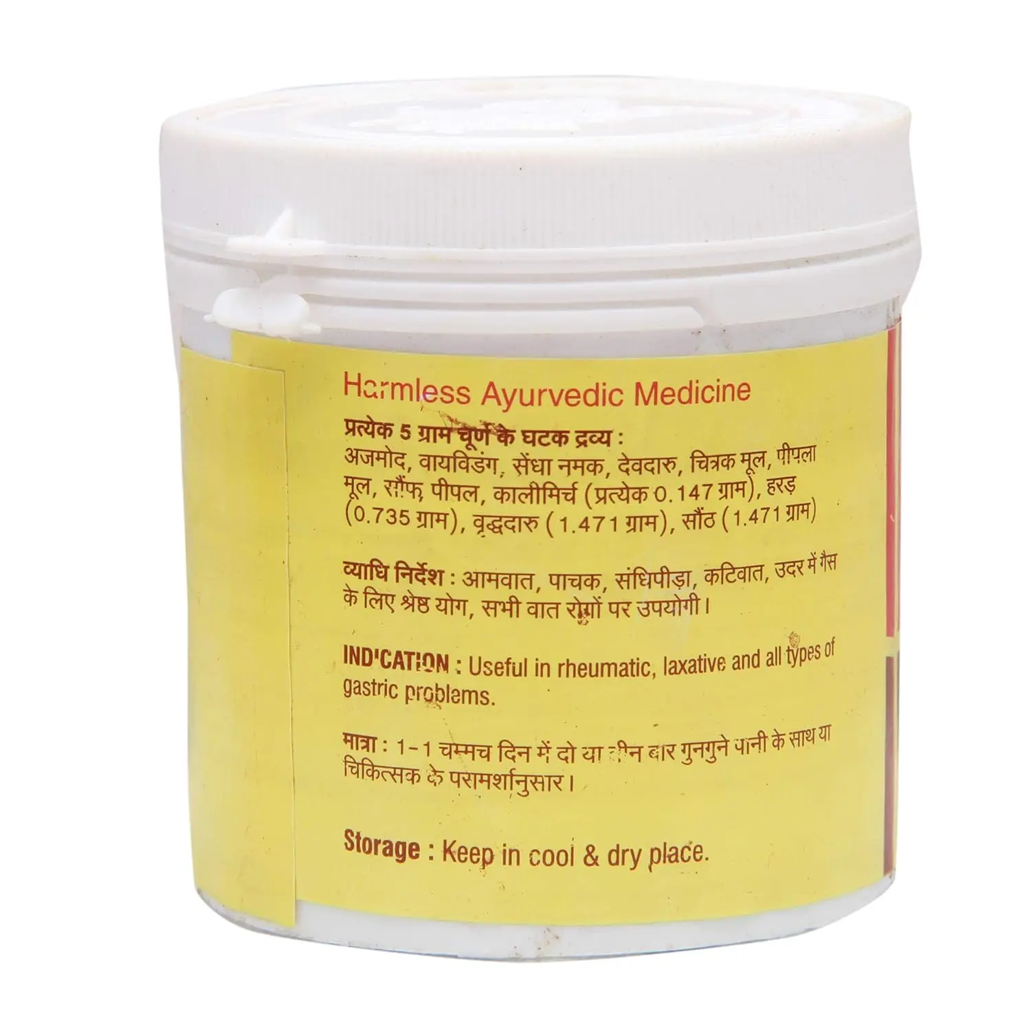 Vyas Ajmodadi Churna Powder is a traditional Ayurvedic medicine formulated to support joint health and overall well-being. This 100 Gm package contains a carefully balanced blend of potent herbs, prepared according to authentic Ayurvedic principles. Ajmodadi Churna is known for its ability to help alleviate joint pain, reduce inflammation, and improve mobility. It aids in balancing Vata dosha, which is often associated with musculoskeletal discomfort. Regular use of this churna can contribute to a healthier and more active lifestyle. The powder form allows for easy consumption and absorption, making it a convenient addition to your daily routine. Discover the natural healing power of Ayurveda with Vyas Ajmodadi Churna and experience relief from joint-related issues. This proprietary medicine is manufactured with high-quality ingredients, ensuring purity and efficacy. Consult with an Ayurvedic practitioner for personalized dosage recommendations and to determine if this product is suitable for your specific health needs. This ancient herbal formula offers a holistic approach to managing joint health and promoting overall wellness. Embrace the wisdom of Ayurveda and find natural relief with Vyas Ajmodadi Churna. The fine powder is easily mixed with water or other beverages for convenient intake.