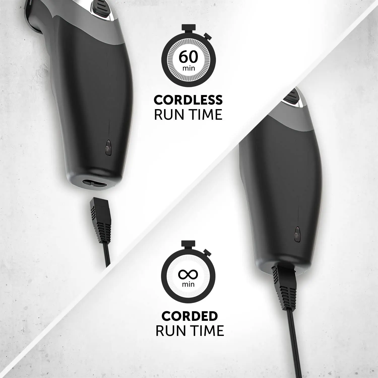 • Cord/Cordless Operation: Offers cordless freedom with up to 60 minutes of run time, plus corded use option.