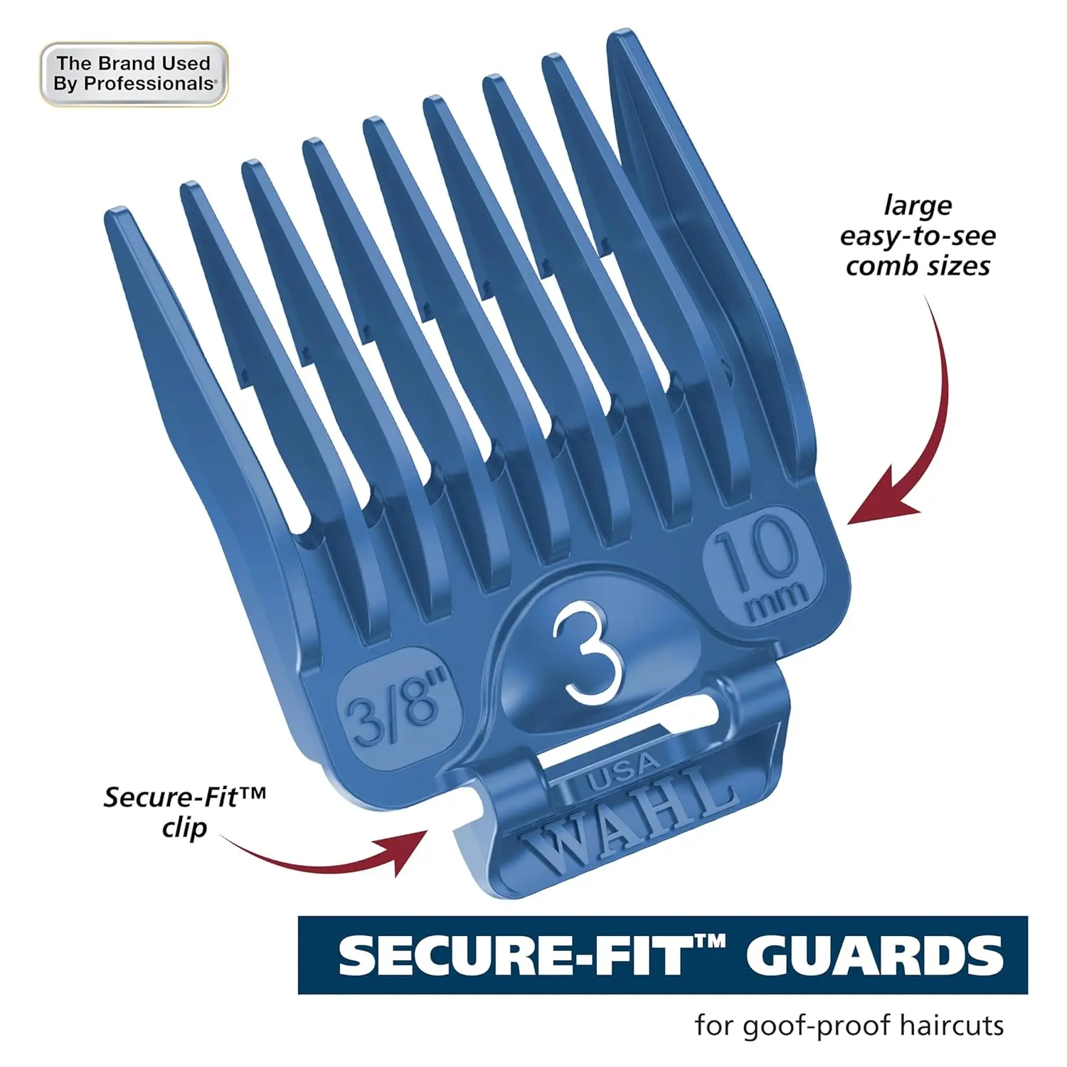 This 14-piece kit keeps your Wahl clipper guards organized and accessible. Includes guards from 1/2″ to 1″, ear tapers, and a custom organizer. Genuine Wahl accessory.