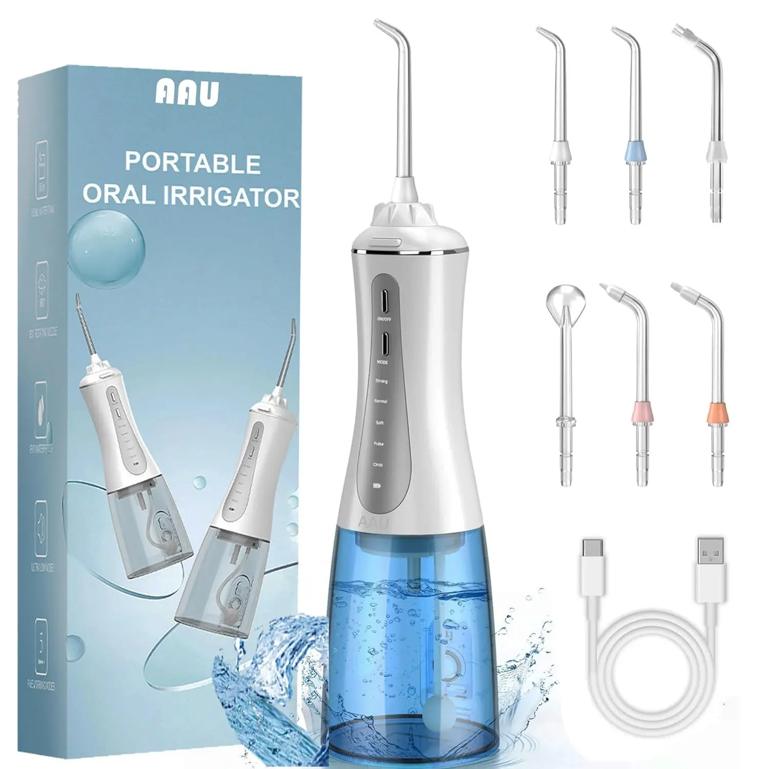 Upgrade your oral hygiene with the Water Flosser Cordless 350ML! This portable oral irrigator delivers a powerful yet gentle stream of water to effectively remove plaque and food debris from hard-to-reach areas. Featuring a large 350ml water tank, you can enjoy a thorough cleaning without the hassle of frequent refills. The IPX7 waterproof design allows for convenient use in the shower and easy cleaning. With the upgraded Pulse Technique, this water flosser provides 2200-3000 pulses per minute and 50-150 PSI water pressure, ensuring a deep and thorough clean. It can eliminate up to 99.99% of food particles and plaque, promoting healthier gums and fresher breath. Enjoy up to 30 days of use on a single 5-hour charge. The cordless design and USB charging capability make it perfect for travel and home use. Customize your cleaning experience with 5 different modes: strong, normal, soft, pulse, and child. The memory function remembers your preferred mode for convenient use every time. The 360° rotatable nozzle allows you to easily reach every corner of your mouth, while the 6 included jet tips cater to the different cleaning needs of your entire family. This water flosser is your ultimate solution for achieving a cleaner, healthier smile.