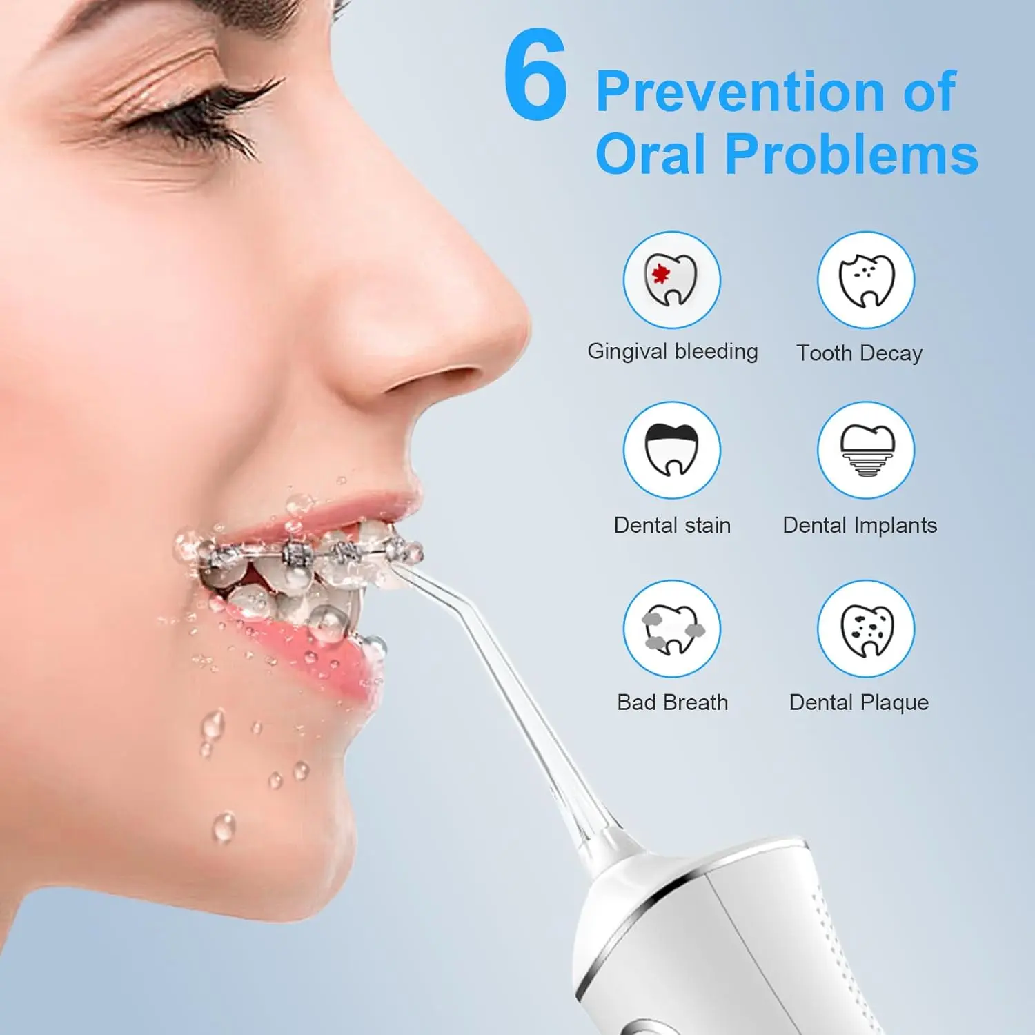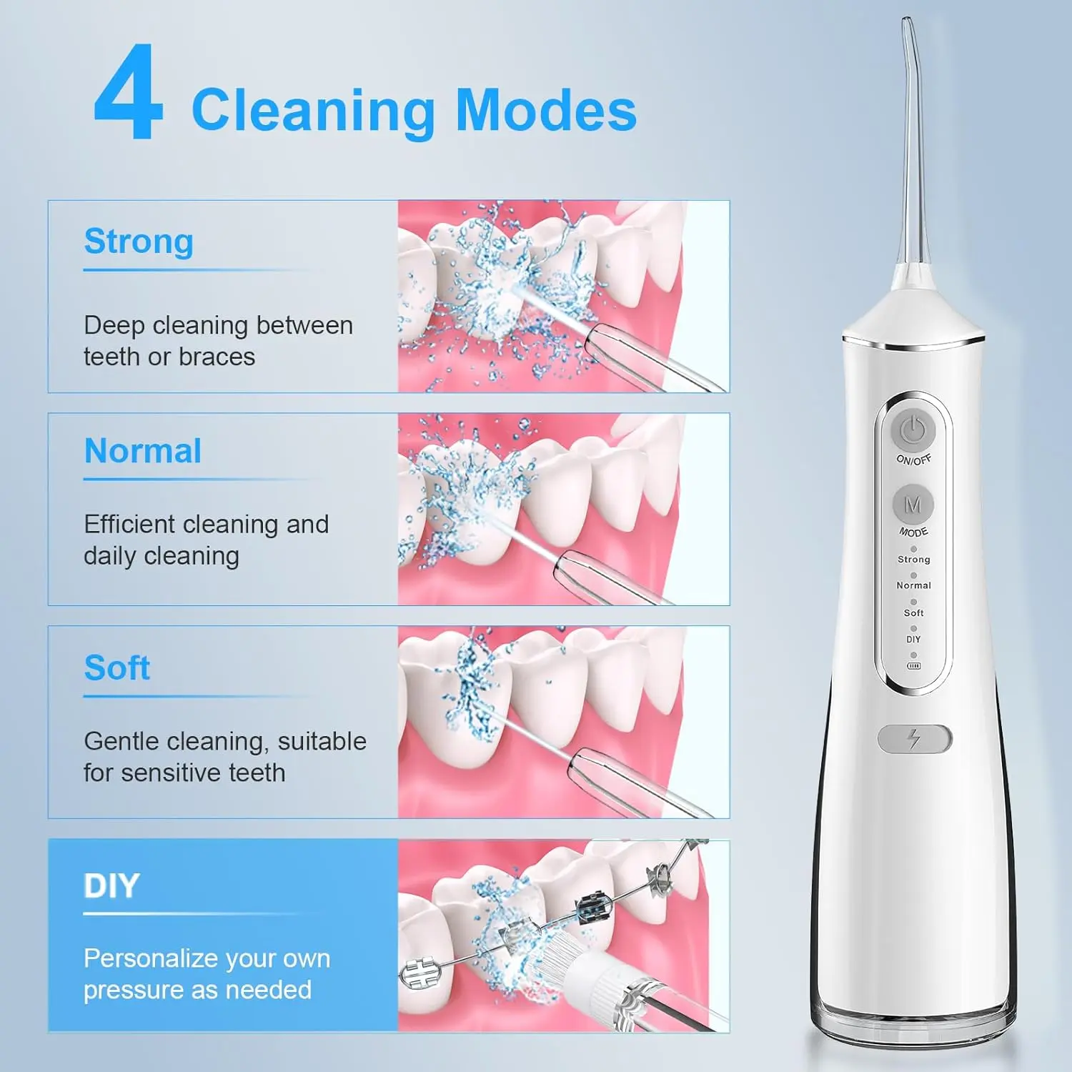 Experience superior oral hygiene with the Water Flosser Cordless Oral Irrigator. This advanced device offers multiple tips and operation modes to cater to your unique dental needs. Effortlessly remove plaque and debris from hard-to-reach areas, promoting healthier gums and a brighter smile. The cordless design provides ultimate convenience, allowing you to floss anytime, anywhere. Choose from various pressure settings and specialized tips for a customized cleaning experience. Improve your oral health routine with this powerful and portable water flosser. The multiple tips include standard, orthodontic, periodontal, and tongue scraper options, ensuring comprehensive cleaning. Different operation modes like Normal, Soft, and Pulse offer personalized pressure control. Perfect for braces, implants, and sensitive gums. Enjoy a cleaner, fresher mouth with this versatile and effective oral care solution. Regular use can help prevent cavities, gingivitis, and bad breath. Compact and lightweight, it’s ideal for travel. Invest in your oral health today!