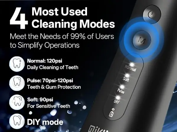 The Miklife Water Flosser features 4 modes, 4 nozzles, a long-lasting battery, and IPX8 waterproofing. With its large water tank and portable design, it’s perfect for home and travel.