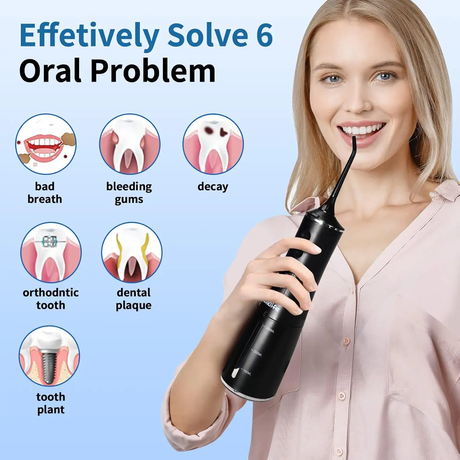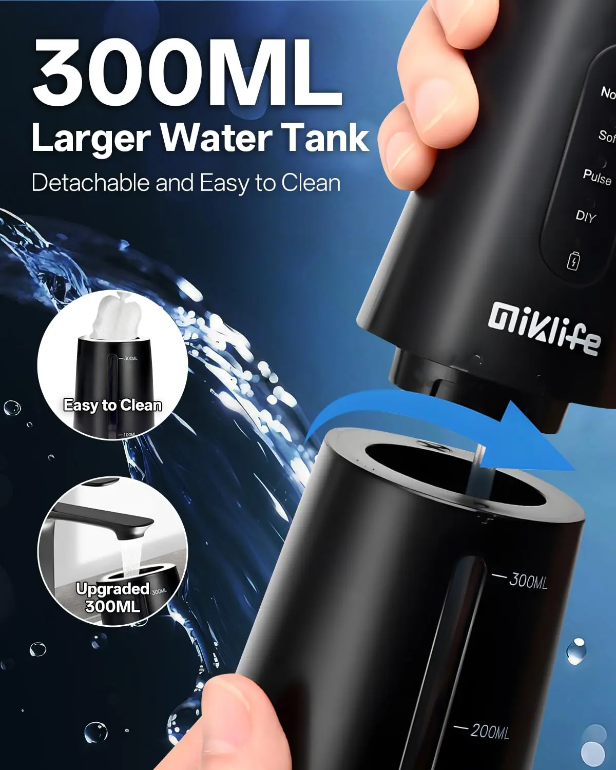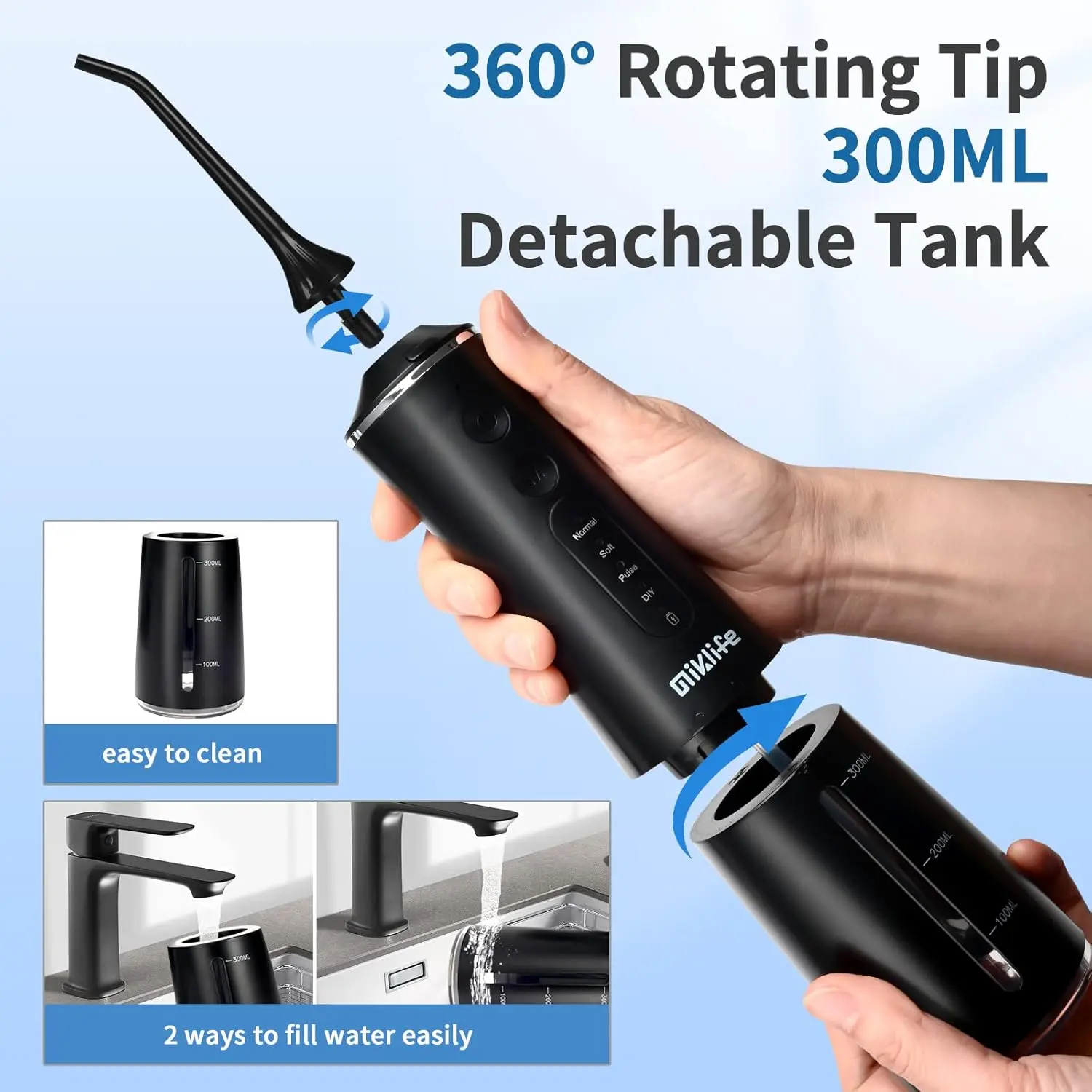 • 300ML Detachable Water Tank: Provides uninterrupted flossing.