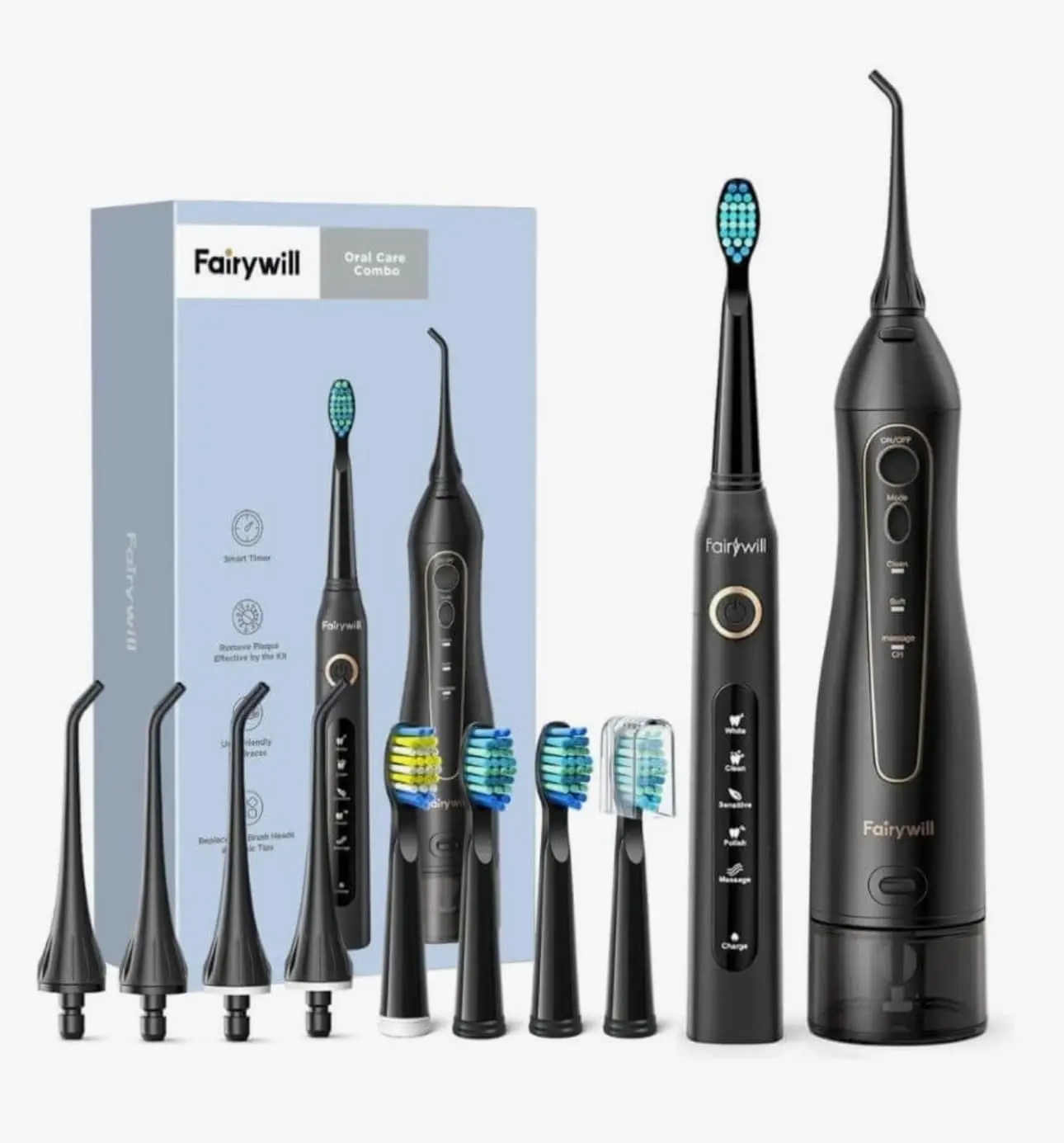 • Complete Oral Care Solution: Toothbrush and water flosser in one.