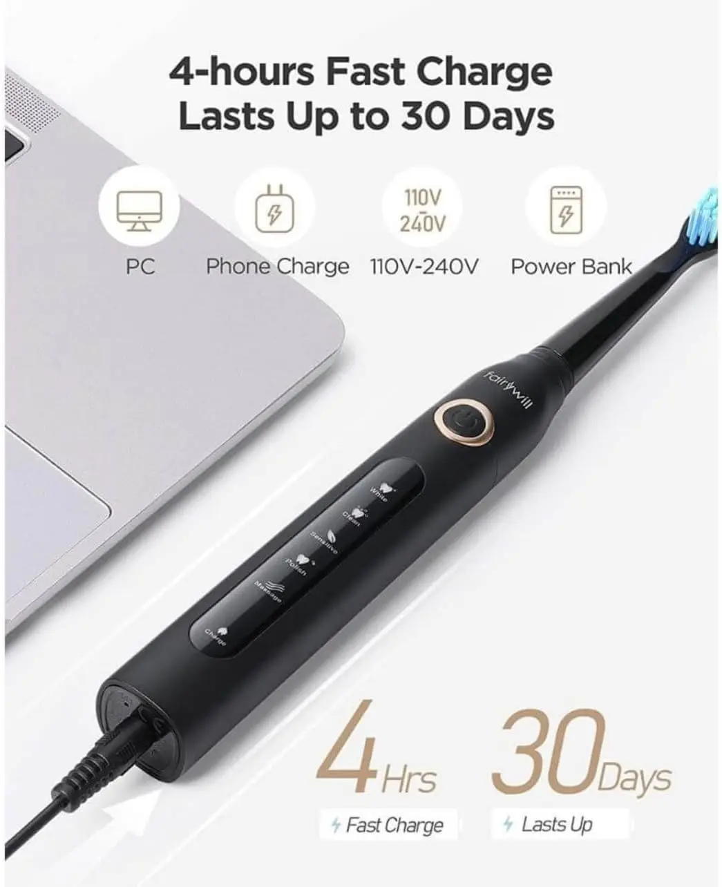 • Long Battery Life: Up to 30 days for the toothbrush, 21 for the flosser.
