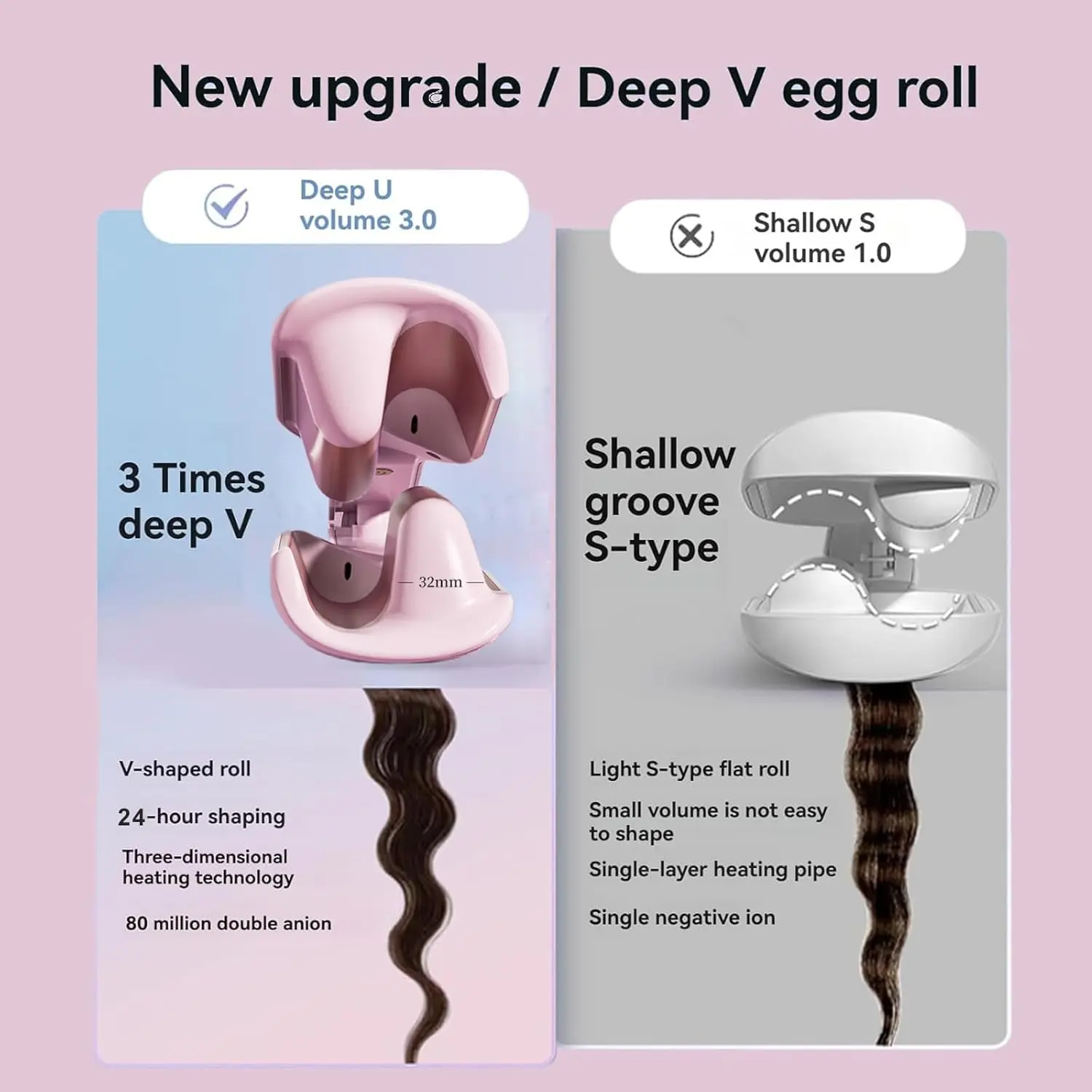 • S-Shaped Curved Design: Dual barrels create perfect 32mm waves easily in 5 seconds.