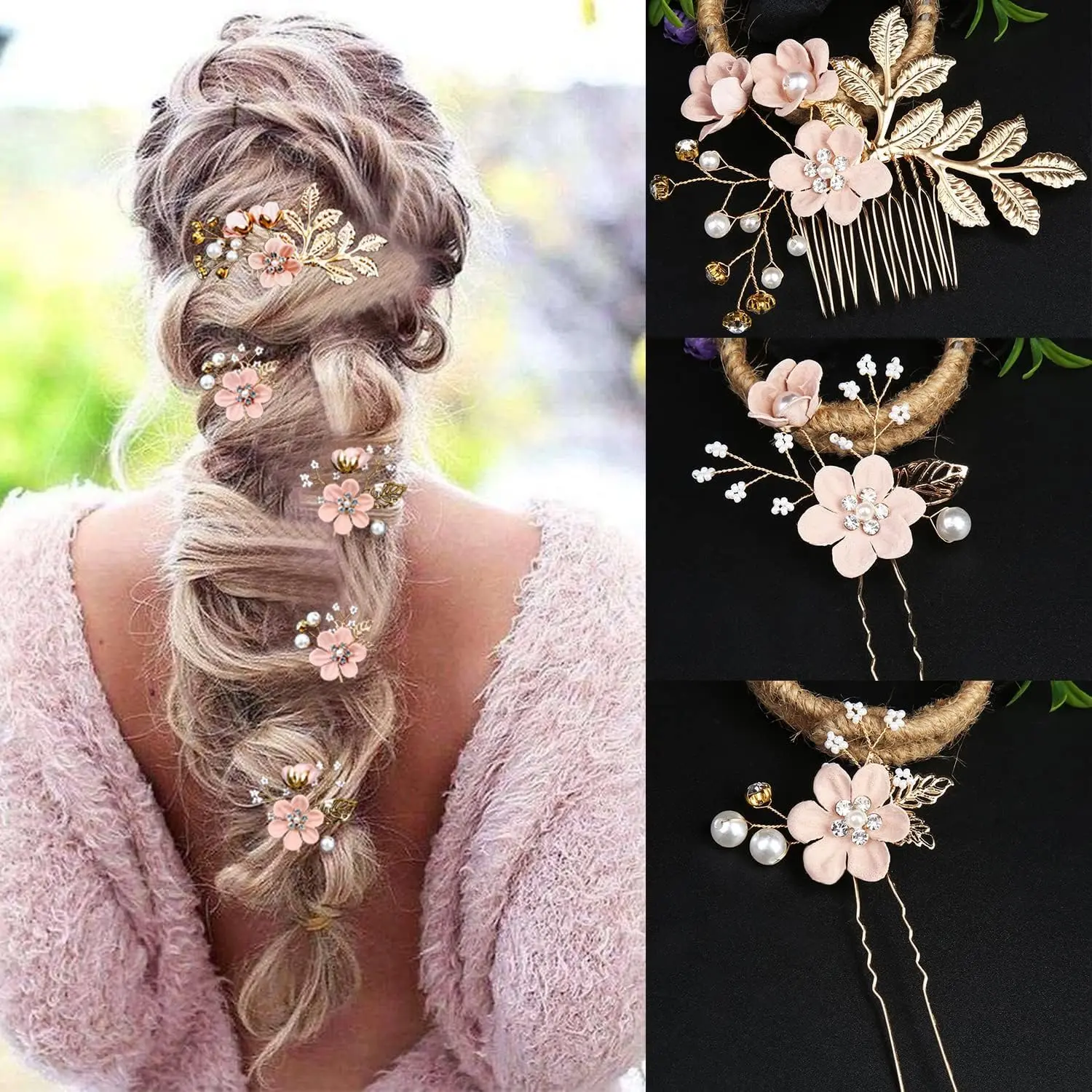 • Sturdy Material: Made of high-quality alloy with rhinestones, pearls, and fake petals.