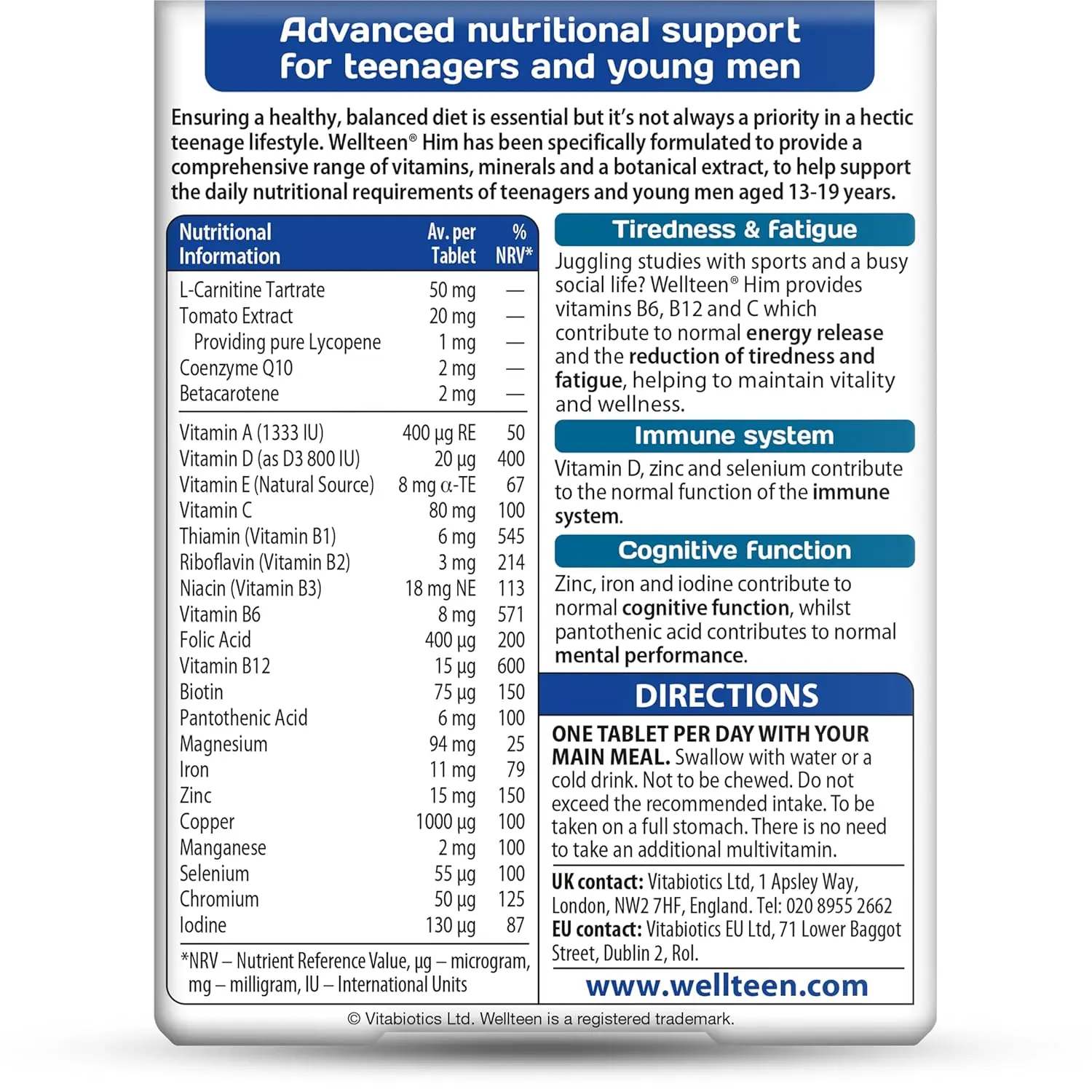 Wellteen Vitabiotics Him is a comprehensive multivitamin meticulously designed to support the unique nutritional needs of teenage boys and young men. This advanced formula is packed with essential vitamins and minerals to help reduce tiredness and fatigue, keeping you energized and focused throughout the day. It also provides vital support for a healthy immune system, helping to defend against illness and maintain overall well-being. Wellteen Vitabiotics Him contributes to normal cognitive function, supporting mental performance and concentration, which is crucial for studies and daily activities. Furthermore, it plays a key role in the maintenance of normal bone health, ensuring strong and healthy bones for an active lifestyle. This supplement offers a comprehensive range of vitamins and minerals, making it an ideal choice for teenage boys and young men seeking to optimize their health and performance. It supports energy levels, enhances immunity, promotes cognitive function, and strengthens bones, all in one convenient daily dose. It’s a great way to ensure you’re getting all the nutrients your body needs to thrive during these important years.