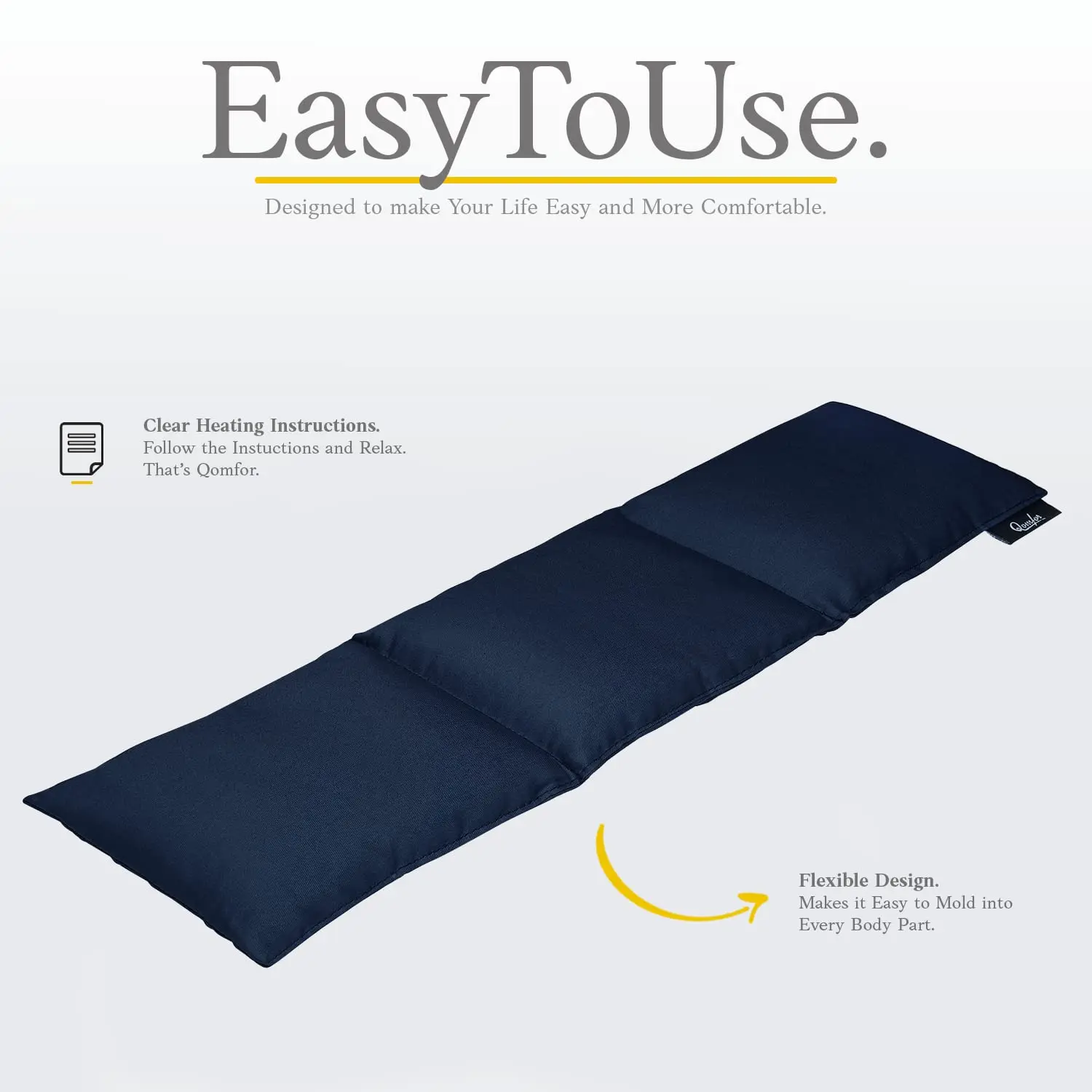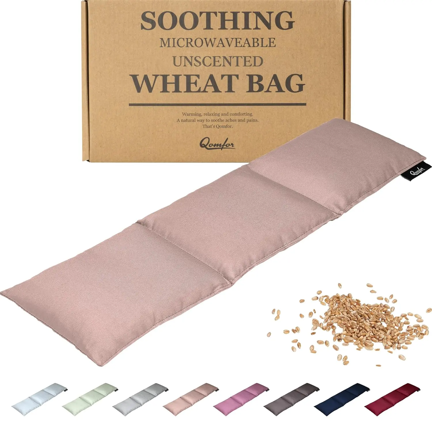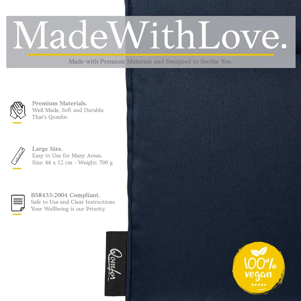 Soothe aches and pains with the Qomfor Wheat Bag Microwavable Heat Pack. This large, flexible wheat bag provides targeted pain relief for sore muscles, neck and shoulders, back pain, period cramps, arthritis, knee pain, and various injuries. Its divided into three compartments to ensure even heat distribution and prevents the wheat from shifting, allowing you to easily mold it to your desired shape for maximum comfort. Simply heat in the microwave according to the easy-to-follow instructions and enjoy long-lasting warmth. Perfect for cozy nights on the couch, especially during chilly winter evenings, this heat pad is your go-to solution for natural pain relief and relaxation. Durable, safe to use, and eco-friendly, this wheat bag is filled with 100% natural wheat and compliant with BS8433:2004, the British Safety Standard for microwavable personal warmers. Qomfor is committed to your wellbeing, offering premium quality lifestyle products. Experience improved personal comfort and purchase your Qomfor wheat bag today. Enjoy soothing relief and relaxation with this essential heat pack! This unscented wheat bag is the perfect alternative to hot water bottles providing a comfortable and sustained heat source for your body. The natural properties of wheat ensure gentle warmth that eases discomfort without the risk of burns. Make the Qomfor Wheat Bag part of your self-care routine, promoting relaxation, easing tension, and improving overall well-being.