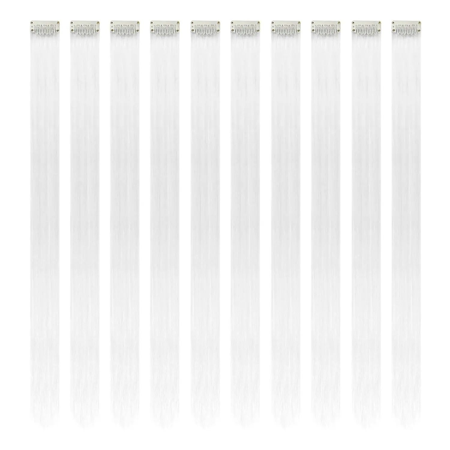 Instantly add color and glamour with these lightweight, clip-in white hair extensions! Perfect for parties, costumes, and everyday fun. High-quality, vibrant, and easy to use.
