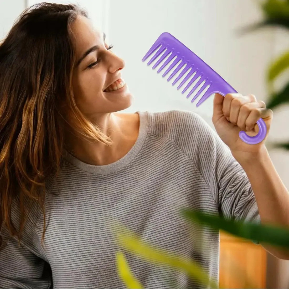 Struggling with tangled hair? Our Wide Tooth Comb Detangling Brush in a beautiful purple hue is the perfect solution! Designed for all hair types, especially curly, thick, and delicate hair, this comb gently glides through knots and snags, minimizing breakage and pain. The wide teeth are specifically spaced to detangle without pulling or damaging your precious locks. Say goodbye to frustrating hair sessions and hello to smooth, manageable, and healthy-looking hair. This comb is also perfect for distributing conditioner or treatments evenly throughout your hair. Experience effortless detangling and enjoy the vibrant color of this essential hair tool! Its ergonomic design ensures a comfortable grip, making your hair care routine a breeze. Whether you have wet or dry hair, this comb will become your go-to for achieving tangle-free perfection. The durable construction guarantees long-lasting use, so you can rely on it for all your detangling needs. This is not just a comb, it’s an investment in the health and beauty of your hair. Add this purple beauty to your hair care arsenal today!