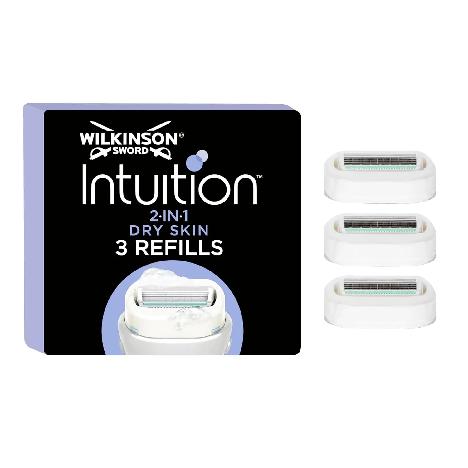 Wilkinson Sword Intuition Sensitive Care refills for a gentle shave. Includes 6 blades, Aloe enriched moisturizing solid and protective guard wires for smooth, soft skin.