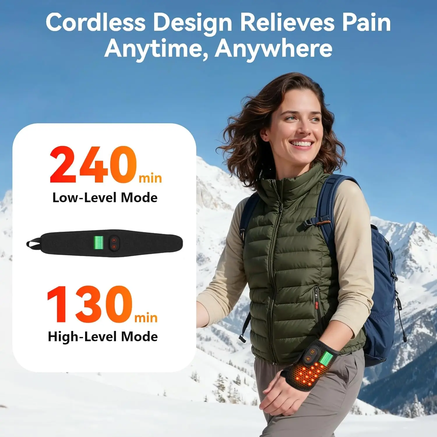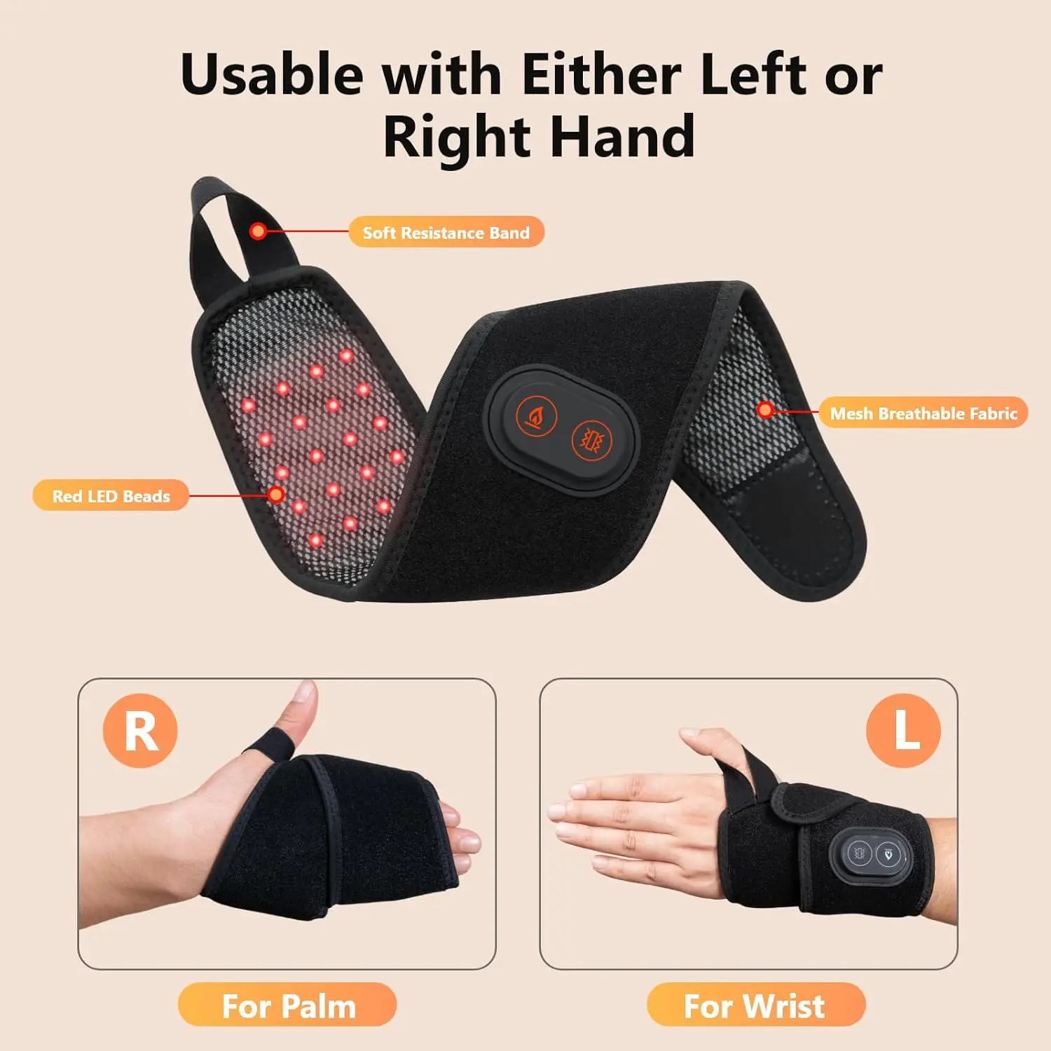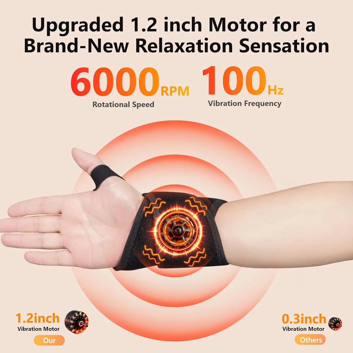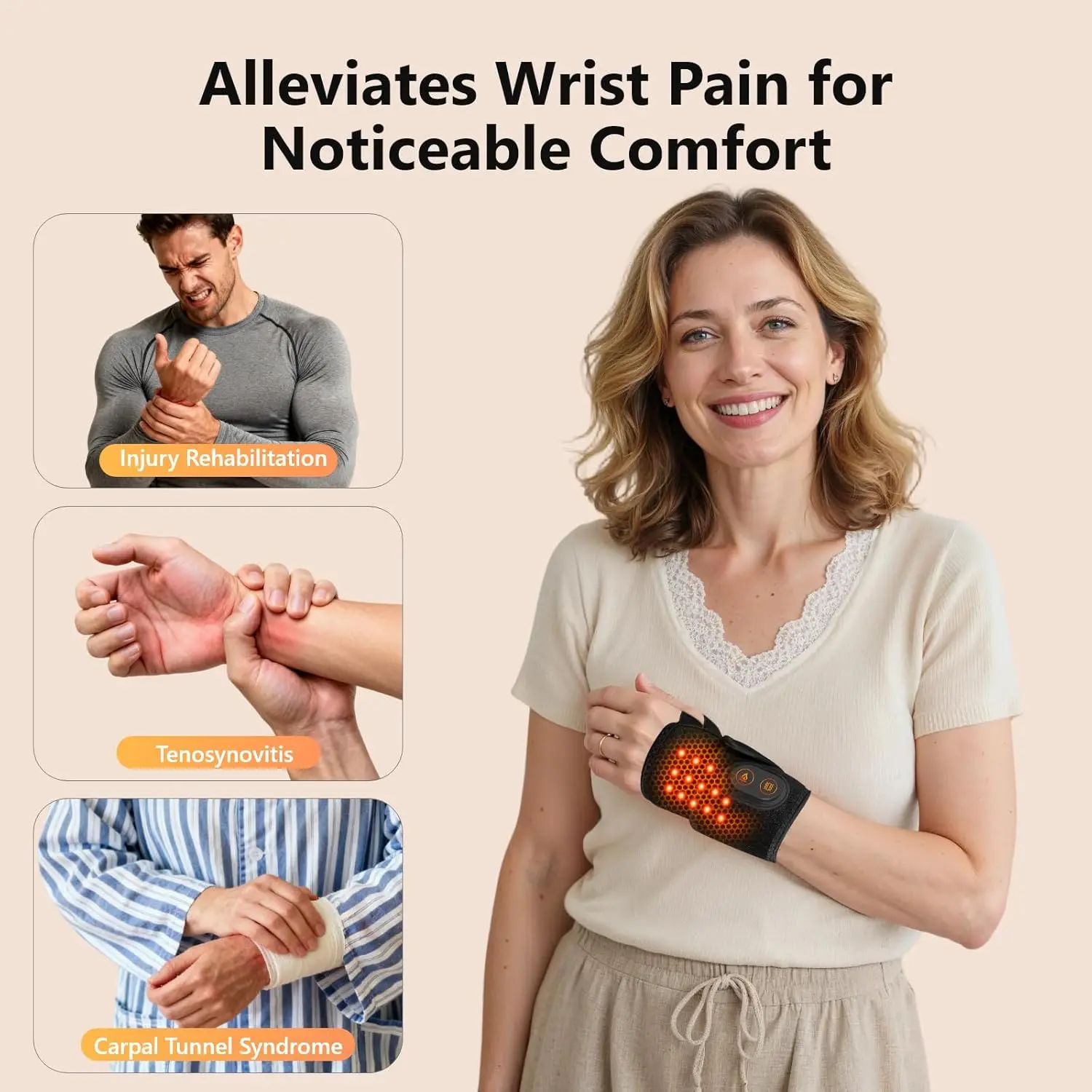 Experience soothing relief with our Wrist Heating Vibration Pad. This innovative device combines the therapeutic benefits of heat and vibration massage to alleviate discomfort caused by wrist arthritis, tenosynovitis, and carpal tunnel syndrome. Reduce muscle fatigue, swelling, and promote healthy blood circulation with this versatile pad. Whether you’re working in the office, relaxing at home, or recovering after sports, this pad offers customizable comfort. Featuring 3 temperature settings (high, medium, low) and 3 vibration modes, you can tailor the intensity to meet your specific pain level. The built-in overheating protection ensures safe and worry-free use. Its user-friendly design allows for one-click switching, making it easy to operate even for seniors. Enjoy wireless portability thanks to the built-in 3000mAh rechargeable battery. Say goodbye to restrictive wires and experience long-lasting relief wherever you go – at home, in the office, while driving, or traveling. The adjustable nylon buckle strap provides a secure and comfortable fit for both left and right hands, accommodating various wrist sizes without feeling too tight. The breathable and skin-friendly fabric is easy to clean and remains dry and comfortable, even after extended use. With its exquisite packaging, it makes a thoughtful and healthy gift for loved ones on special occasions like Mother’s Day, Father’s Day, Christmas, or Thanksgiving. Give the gift of comfort and well-being with this practical and heartwarming present. Invest in your wrist health and enjoy the benefits of targeted pain relief and soothing massage.