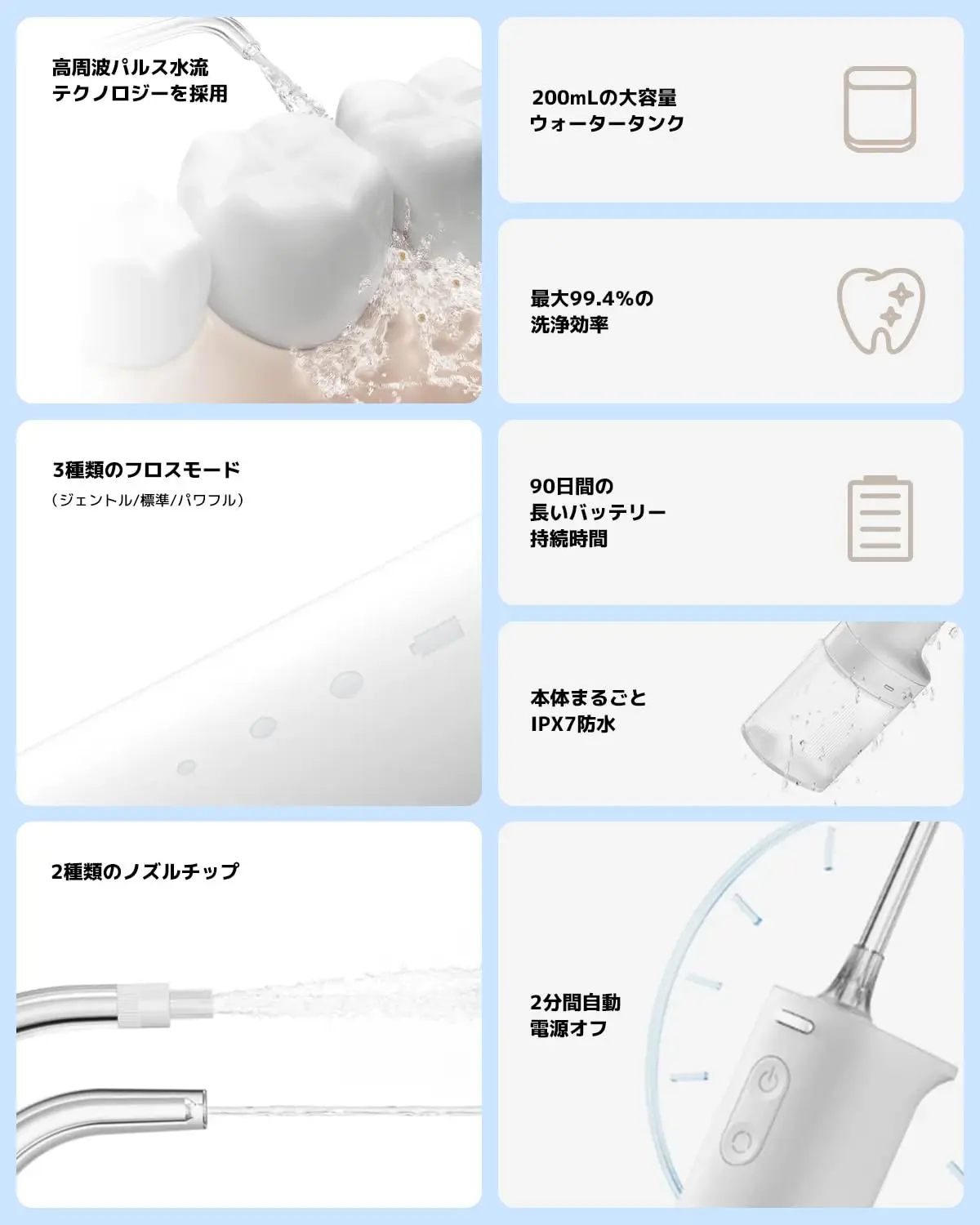 • High-frequency water pulsing for effective cleaning