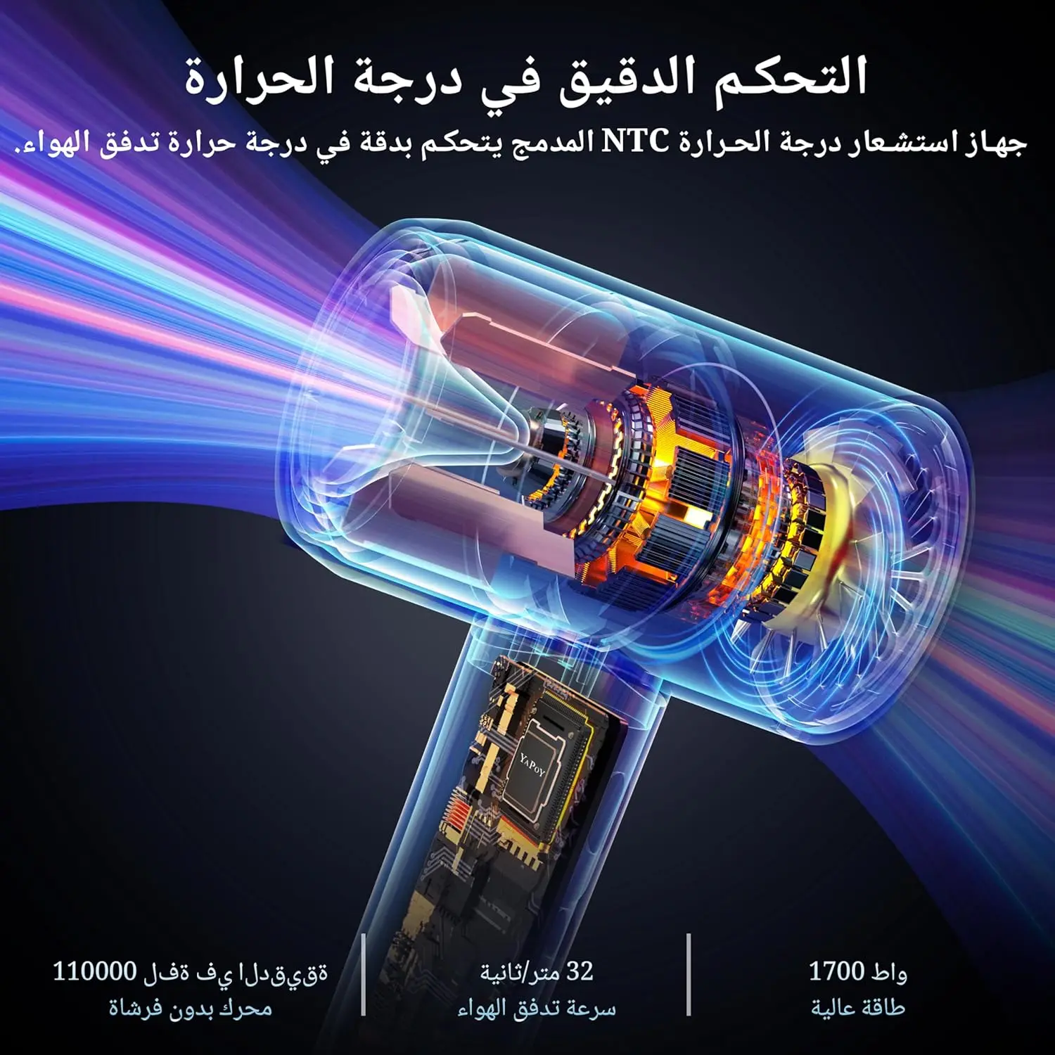Experience the future of hair drying with the YAPOY Hair Dryer. Engineered for speed and hair health, this dryer boasts a powerful 110,000 RPM brushless motor that delivers a 32m/s wind speed, drying your hair in just 2-5 minutes. Say goodbye to lengthy drying times and hello to more free time! Beyond speed, the YAPOY prioritizes hair protection. By minimizing heat exposure, it helps prevent damage and keeps your locks looking their best. Enjoy peace of mind with our 24-month warranty.