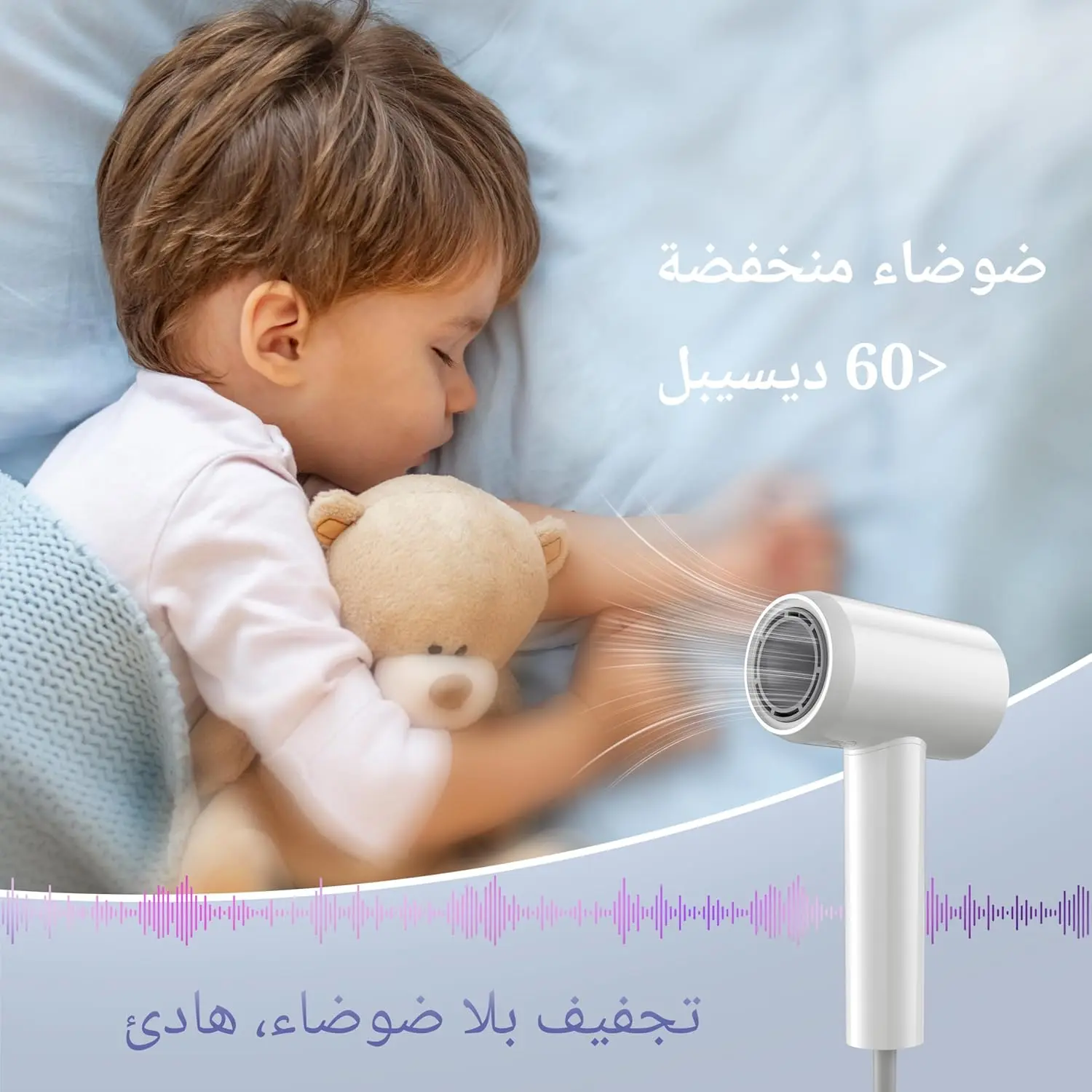 Customize your drying experience with three temperature settings (cold, warm, and hot air) and two speed levels (high and low). This versatility makes it suitable for all hair types and textures. The high safety factor ensures it’s safe for use by everyone in the family, including the elderly, adults, children, and even pets!