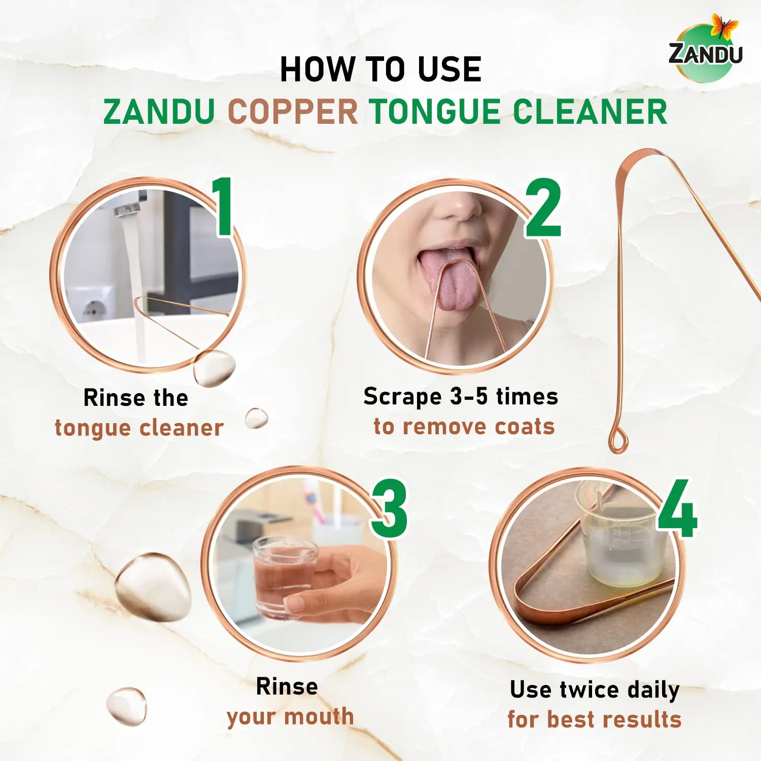 Furthermore, the Zandu Copper Tongue Cleaner features thick and safe blunt edges, designed with your comfort and safety in mind. These edges provide a gentle yet effective cleaning action, preventing cuts and irritation. You can confidently use this tongue cleaner every day without worrying about discomfort or injury. It’s a gentle and safe way to maintain optimal oral hygiene. Make Zandu Copper Tongue Cleaner your first line of defense against bad breath and poor oral health and discover the pure fresh clean.